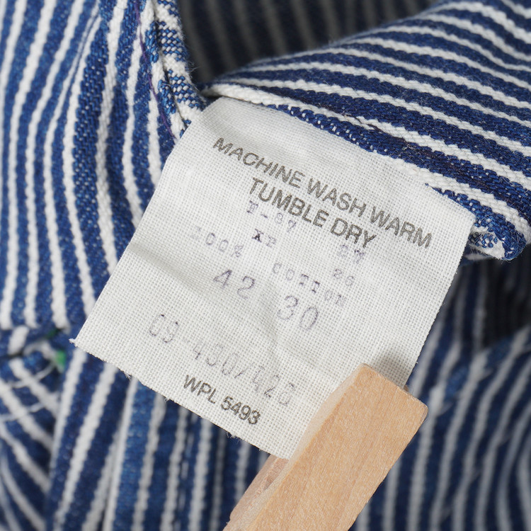 데님두께의 히코리 스트라이프 코튼소재의 오버롤입니다. 허리 사이즈 42, 길이 30의 상당히 넉넉한 사이즈로 편하게 착용가능한 제품입니다. 사용감 적은 매우 우수한 컨디션입니다.