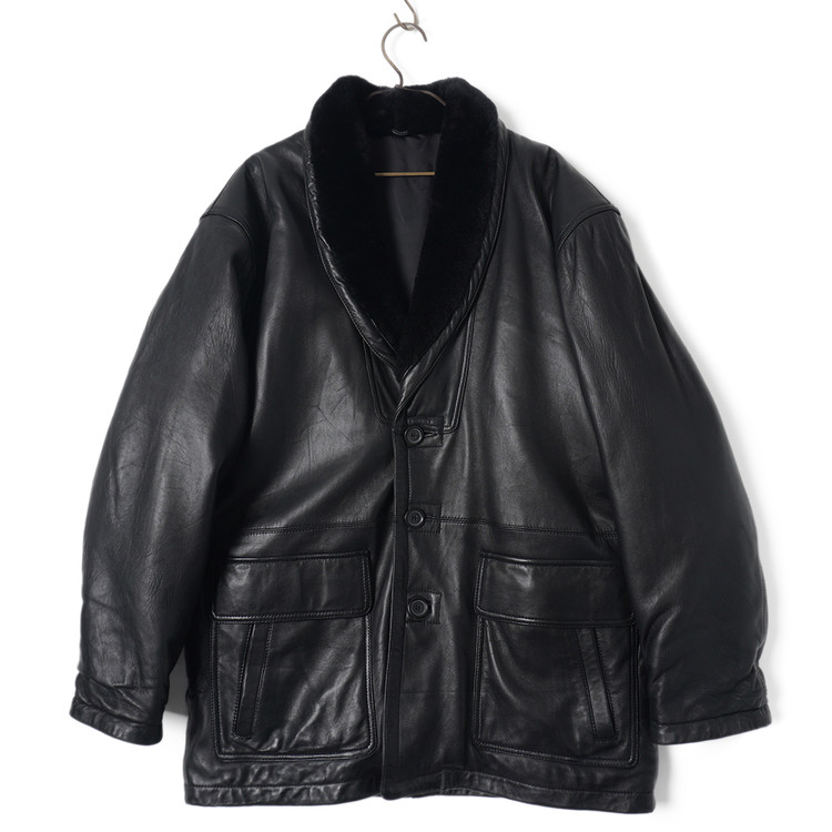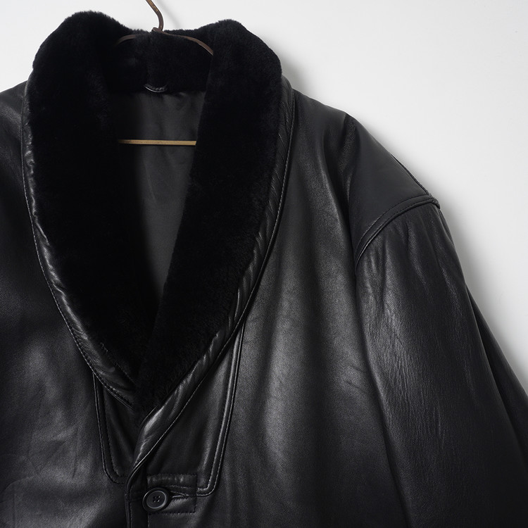 빈티지 양가죽 숄카라 퍼 트리밍 버튼 자켓