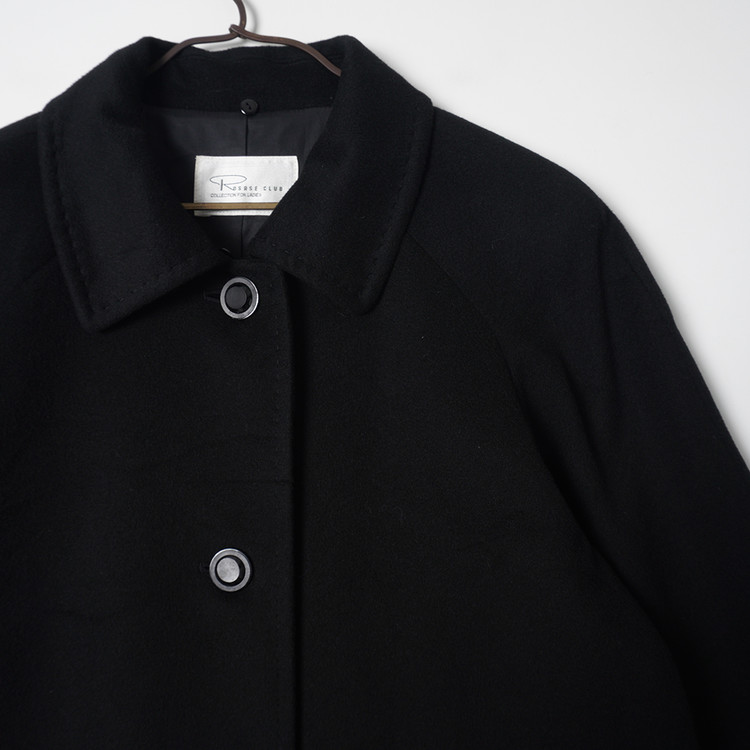 여성용 블랙 캐시미어 원단이 사용된 롱 코트입니다. 부드러운 원단감의 우수한 컨디션