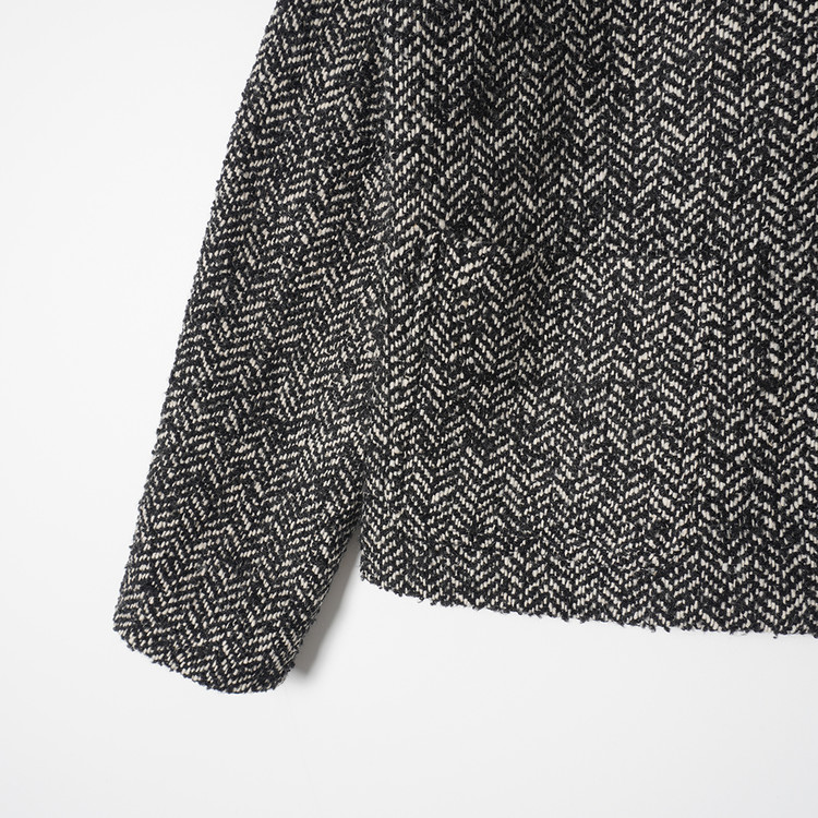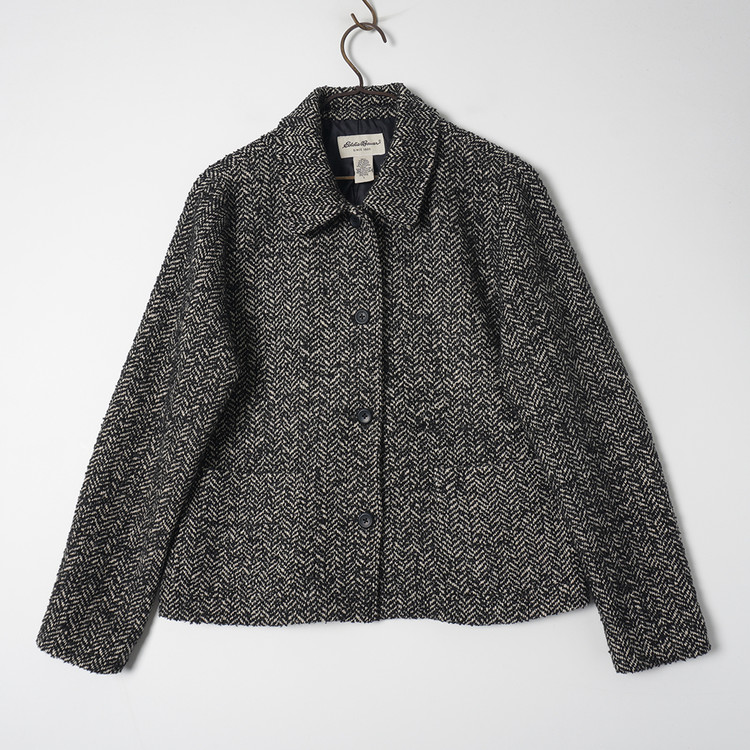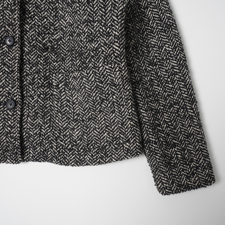 뽀글뽀글한 원단감의 울블렌드 헤링본 트위드 소재 버튼자켓입니다. 자연스러운 착용감의 제품으로 우수한 컨디션, 국내 여성 L또는 오버핏 free 추천드립니다.
