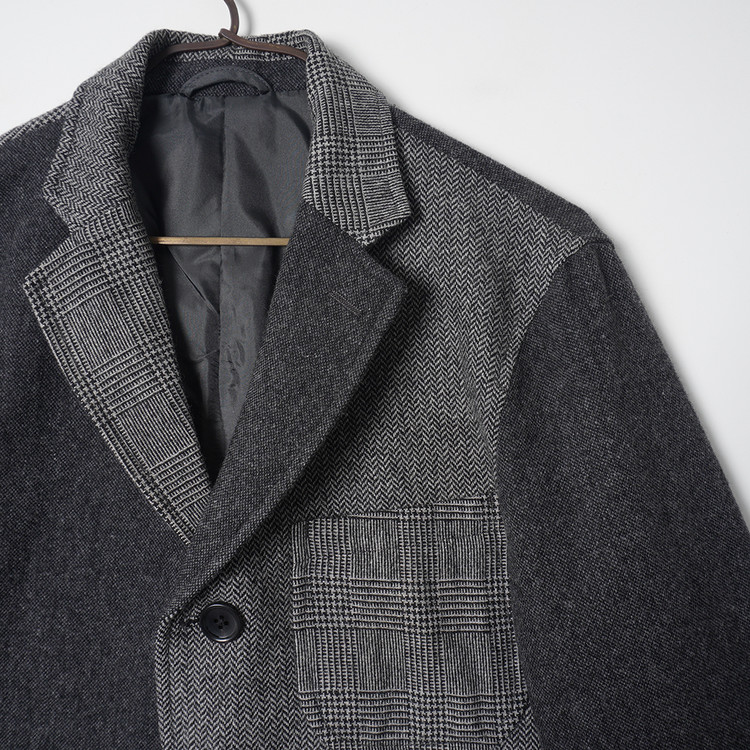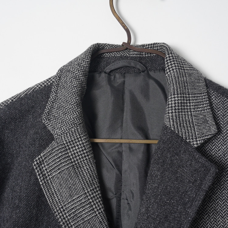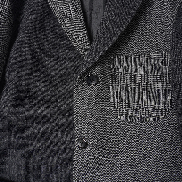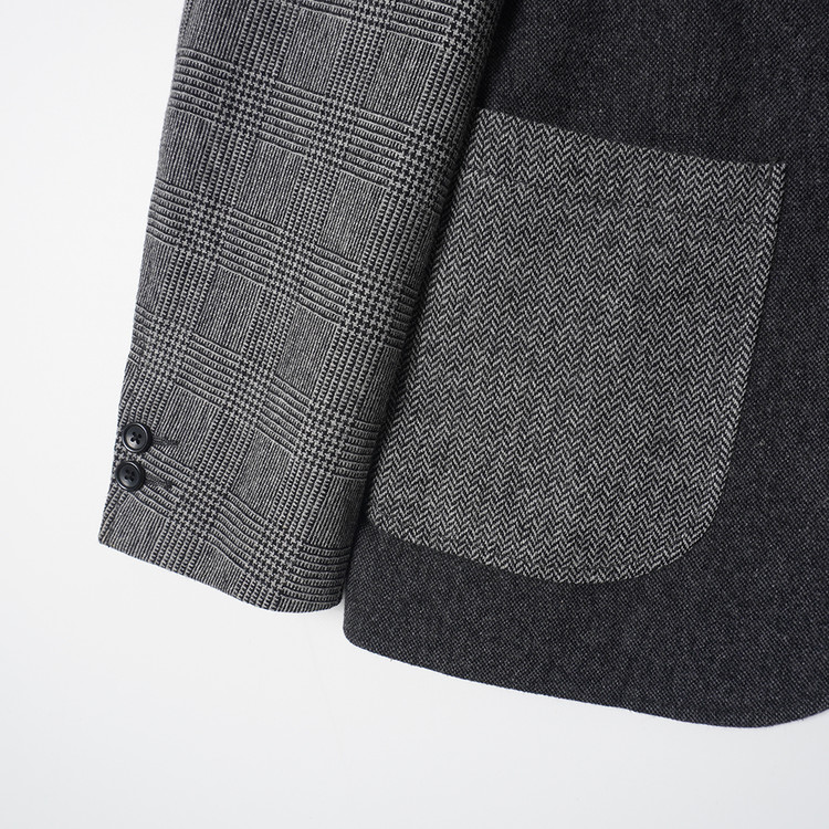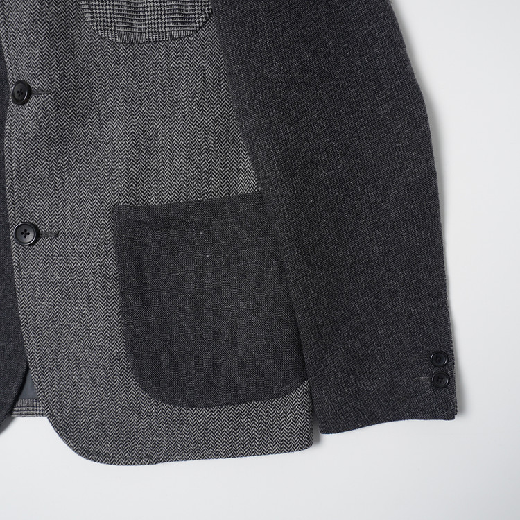 다양한 패턴의 트위드, 체크가 사용된 블레이져 입니다. 울블렌드 사양의 두껍지 않은 트위드 원단으로 봄/가을 아우터 또는 겨울철 코트안에 가디건처럼 착용해도 좋은 제품입니다.