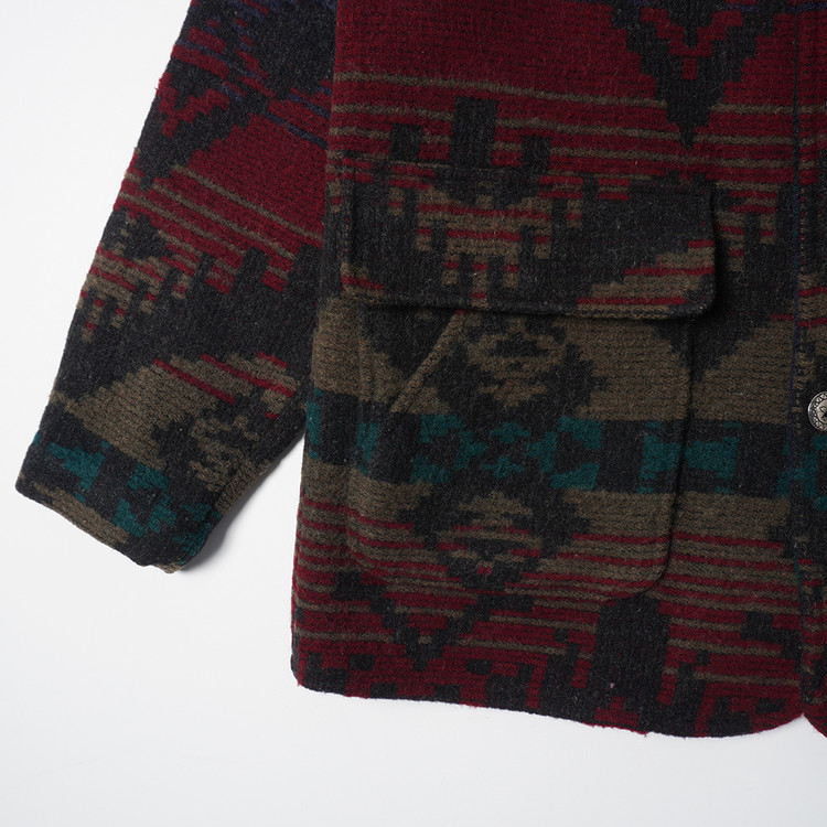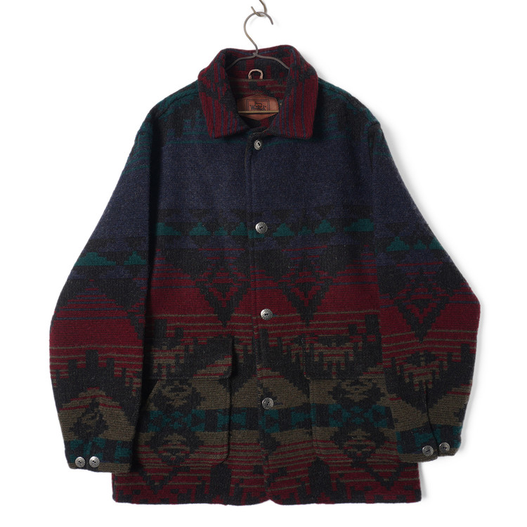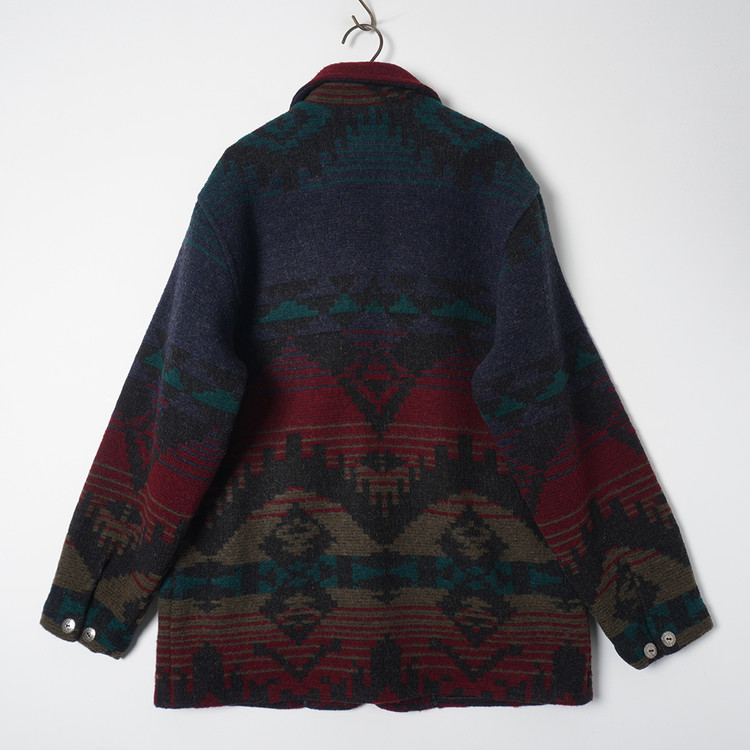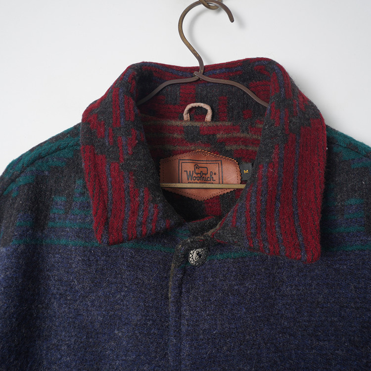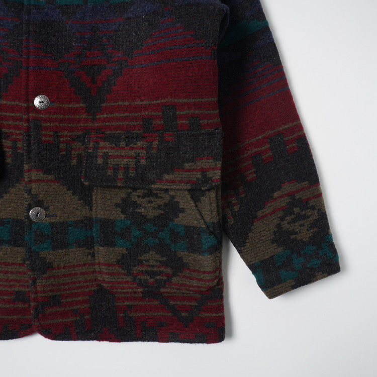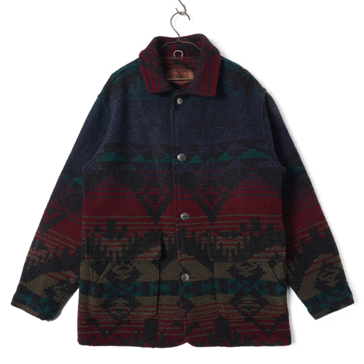 유니크한 패턴과 색감, 디자인의 90년대 빈티지 울리치 울 코트입니다. 메탈 버튼,자가드 그래픽 패턴의 우수한 컨디션 유지중입니다. 표기사이즈 M, 국내 남성 L-XL 사이즈 추천드립니다.