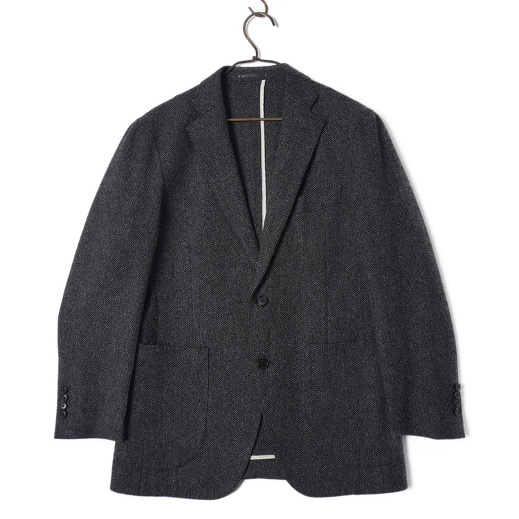 아브라함 문의 트위드 울 원단이 사용된 2버튼 블레이져 입니다. 부드러운 착용감과 가벼운무게감으로 편하게 착용하기 좋은제품입니다. 국내 남성 M, 여성 오버핏 Free 사이즈 추천드립니다.