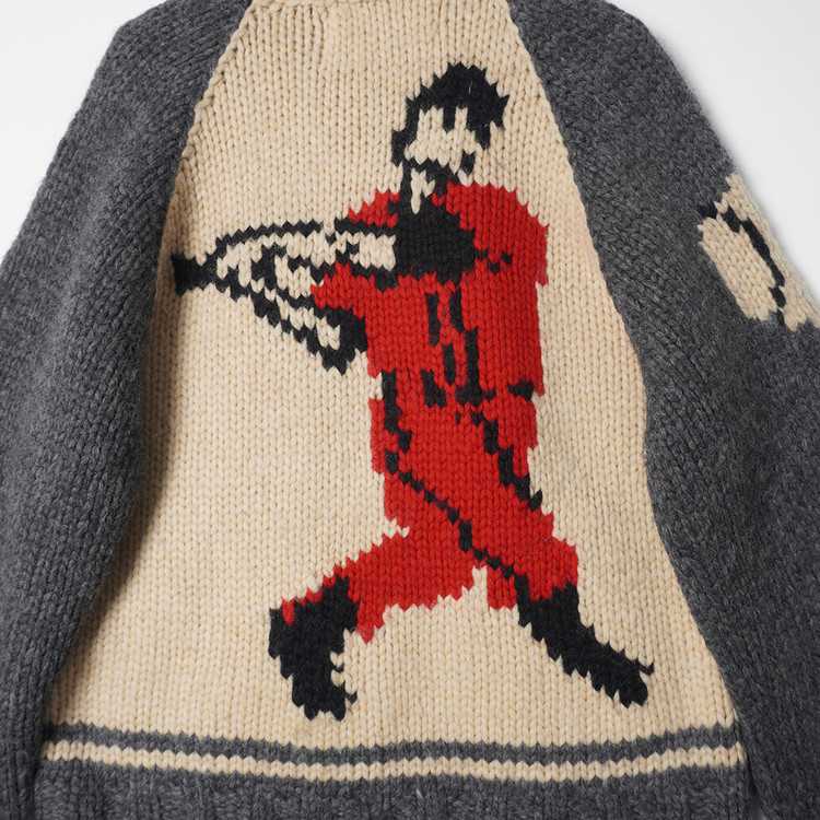 두툼한 직조의 캐너디언 스웨터 컴퍼니 코위찬입니다. 베이스볼 그래픽의 유니크한 디자인으로 배색과 컬러감 모두 멋진제품입니다. 사용감 적은 우수한 컨디션으로 국내 남성 L 정도 또는 여성 오버핏 Free 사이즈 추천드립니다.
