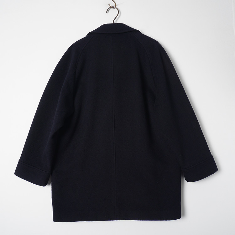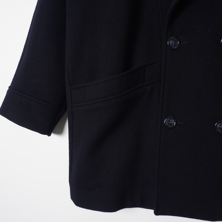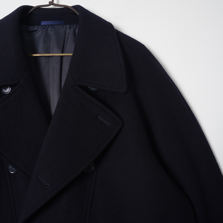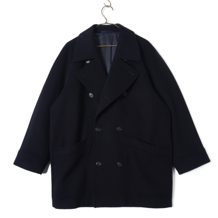 피코트 스타일의 더블브레스티드 코트입니다. 울/캐시미어 혼방 원단이 사용된 제품으로 자연스러운 어깨라인과 라펠, 우수한 원단감의 제품입니다. 표기사이즈 M, 국내 남성 M, 여성 Free 사이즈 추천드립니다.
