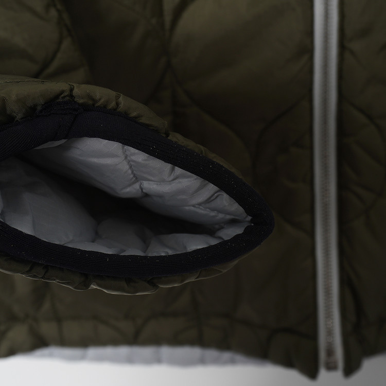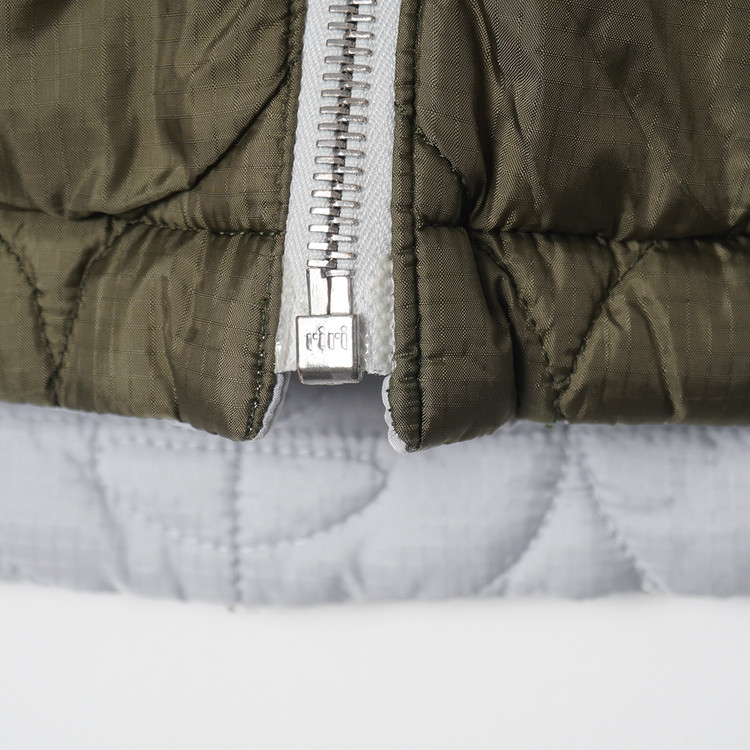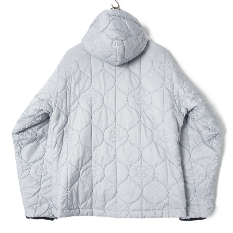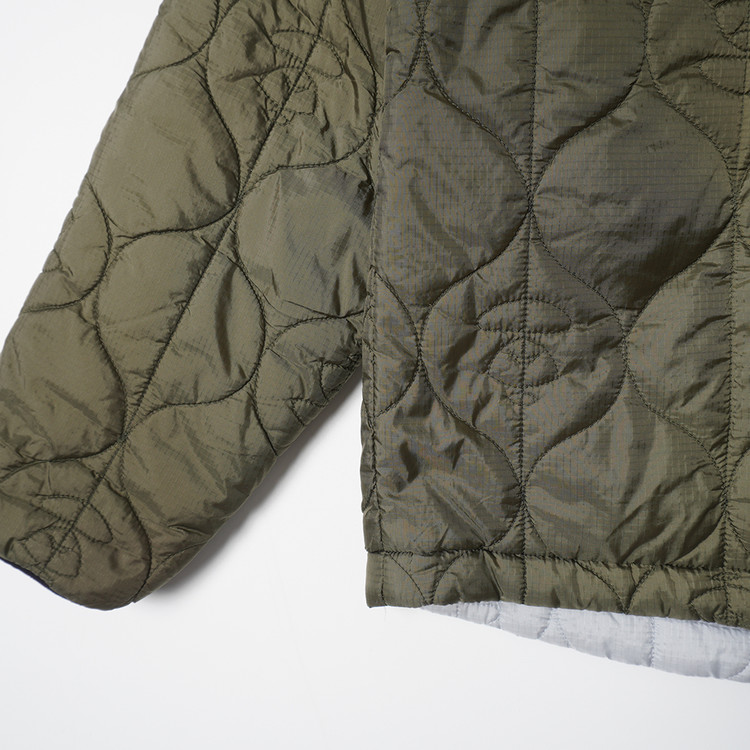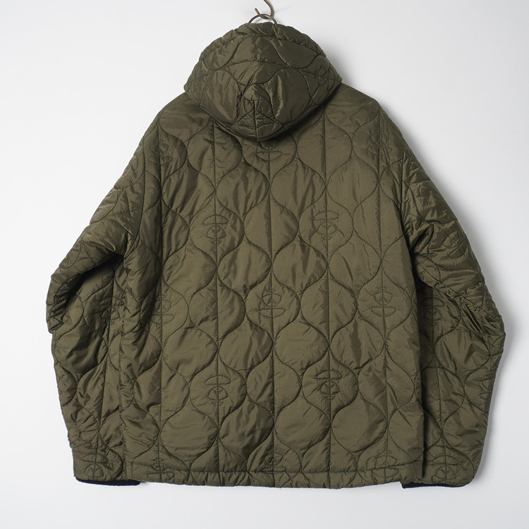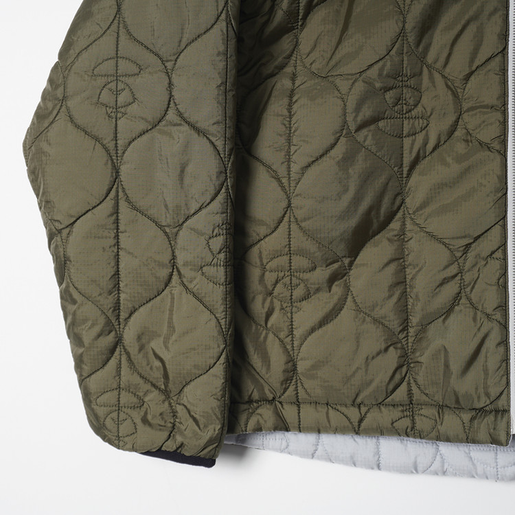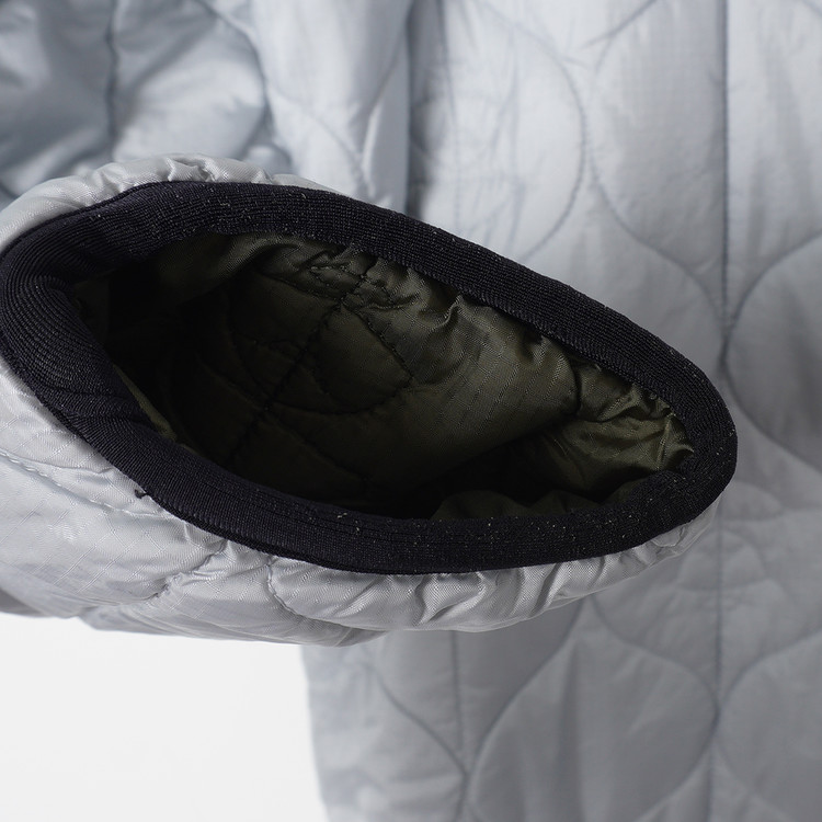 스카이블루그레이/올리브그린 양면으로 착용가능한 퀼티드 후드 자켓입니다. 특유의 퀼트 디테일, 넥 스트랩, 리리 지퍼등이 특징인 제품으로  소매 리브 사용감 외 전체적인 컨디션 우수한 상태입니다. 표기 사이즈 M, 국내 남성 넉넉한 M 정도 추처드립니다.