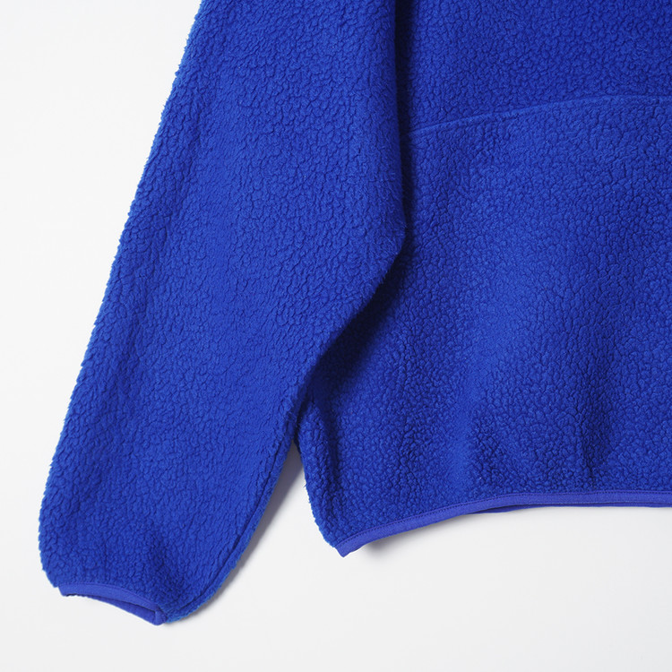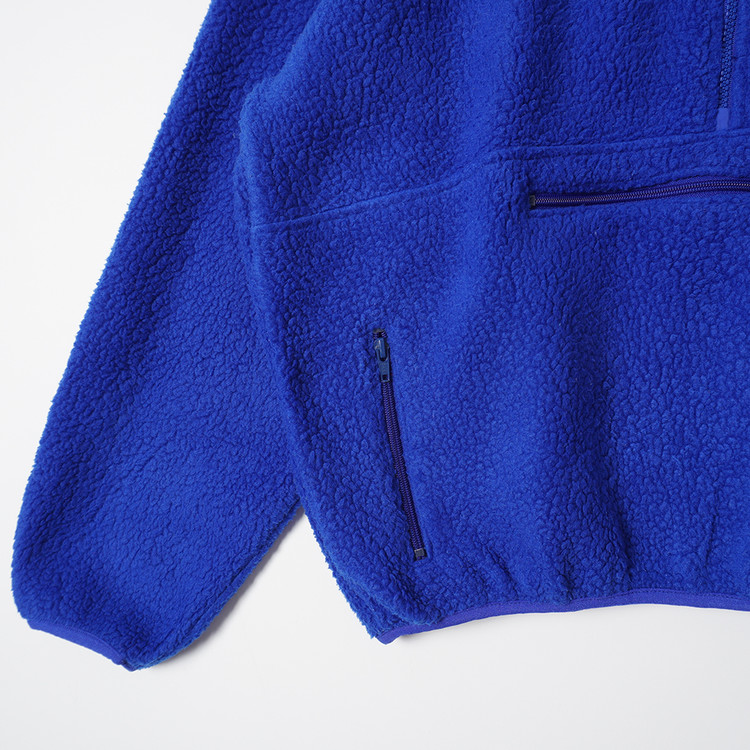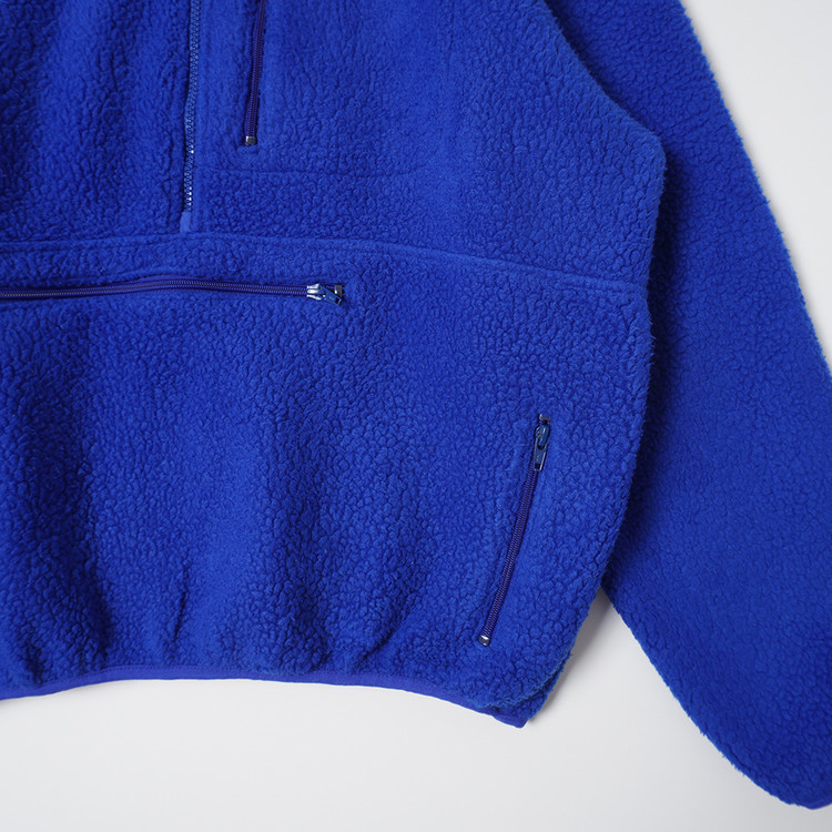 아노락 스타일의 하프집업, 배부분 집 포켓의 플리스 풀오버입니다. 벌키한 느낌의 플리스가 사용된 제품으로 여성L 사이즈이지만 사이즈 대비 큰 실측으로 국내 남성 넉넉한 L, 여성 오버핏 Free 사이즈 추천드립니다.