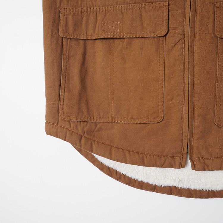 쉐르파 느낌의 플리스 안감, 덕코튼 겉감의 워크 베스트입니다. 표기사이즈 S이나 다소 크게 나온 제품으로 국내 남성 M-L, 여성 free 사이즈 추천드립니다.