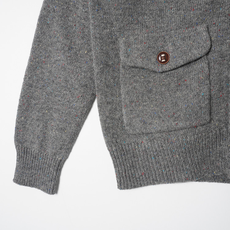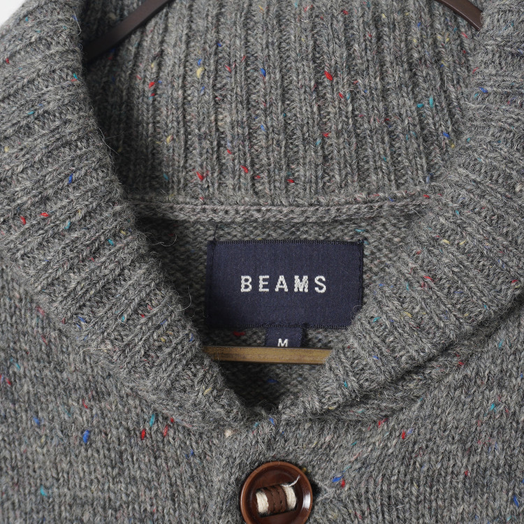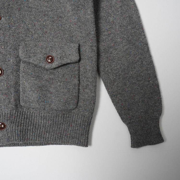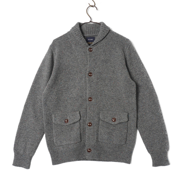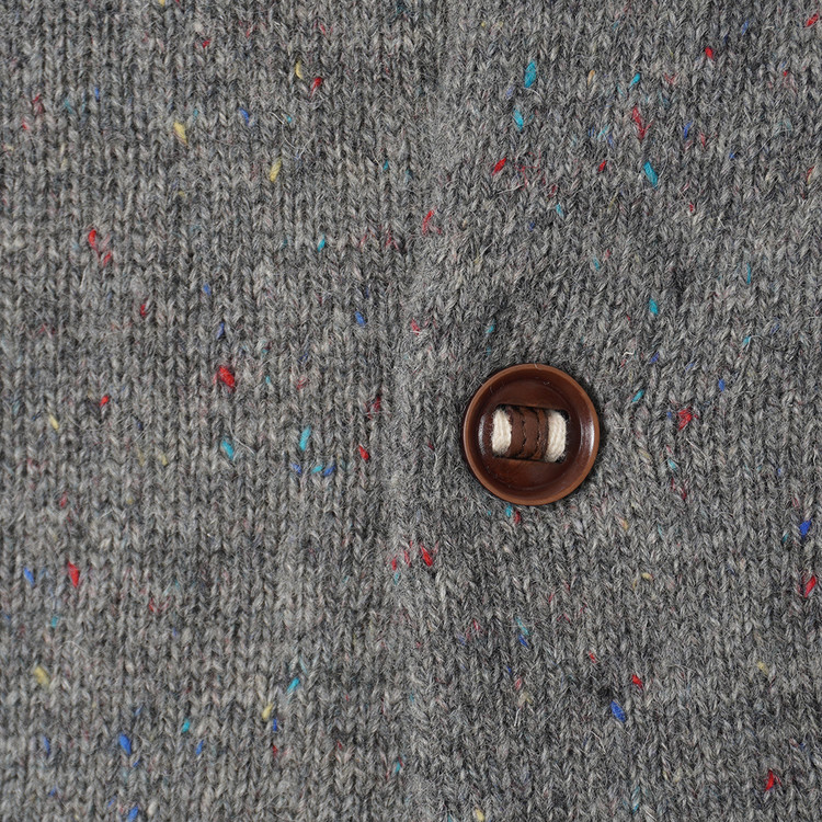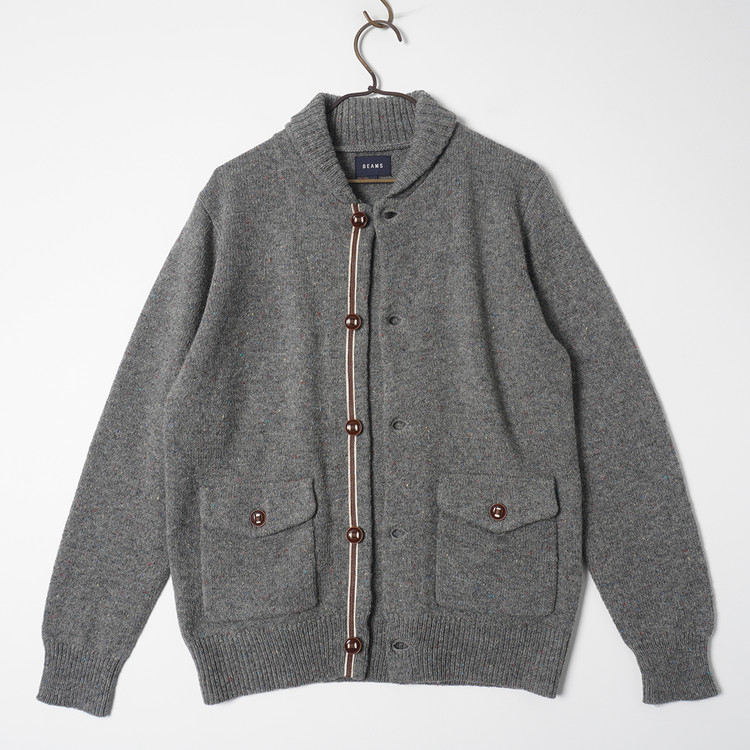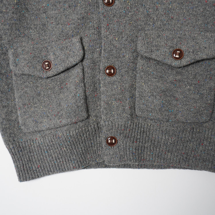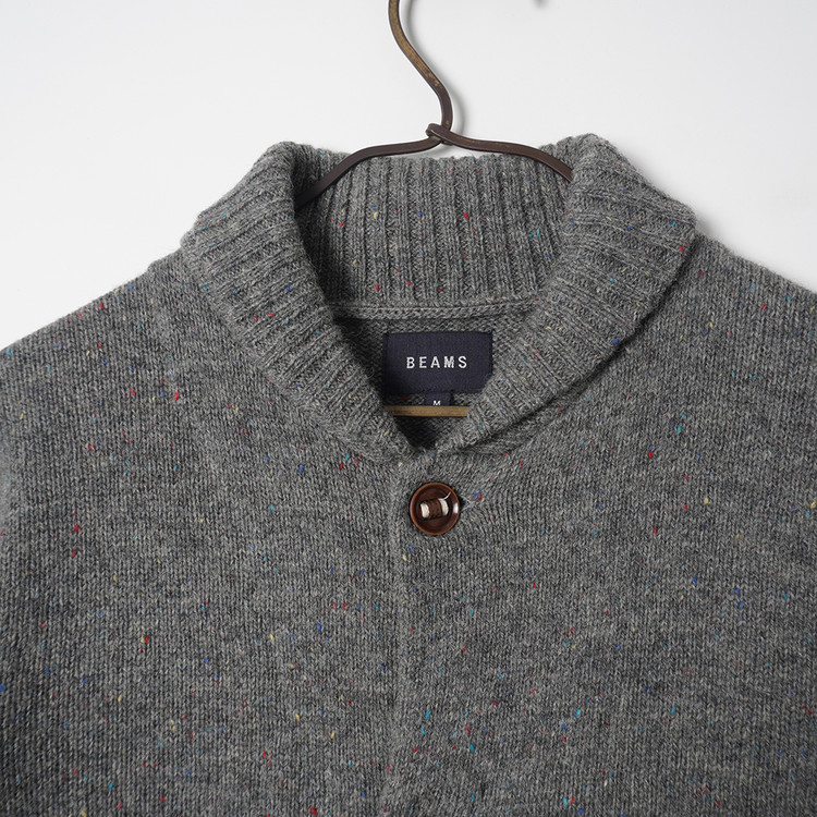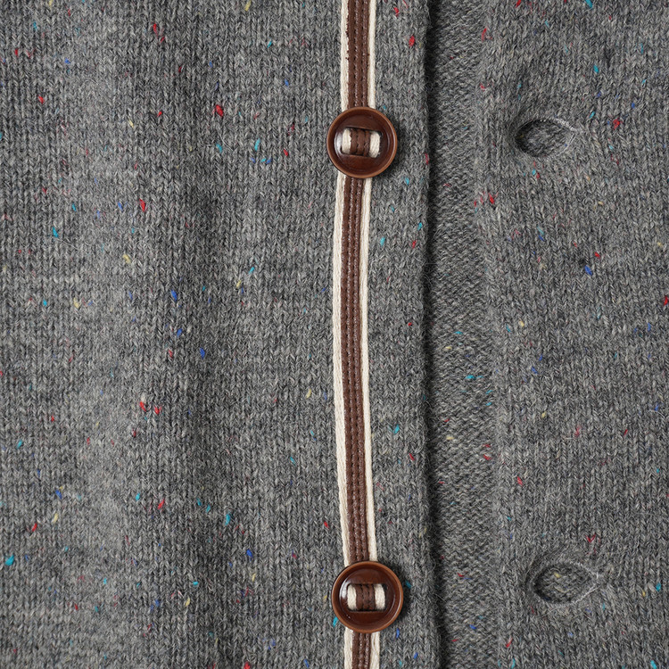 소가죽 라인 디테일, 약한 멀티컬러 스팟 디테일이 섞인 니팅의 버튼 니트 가디건입니다. 사용감 적은 우수한 컨디션