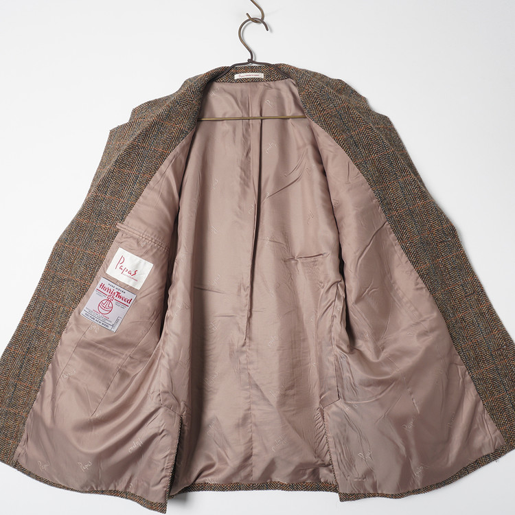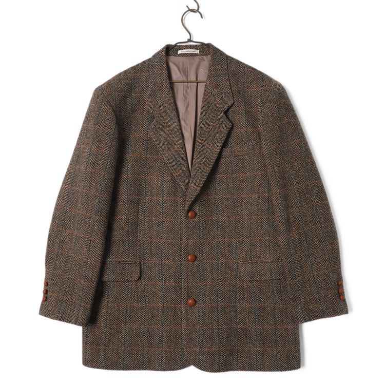 해리스 트위드 울 헤링본 모직 3버튼 블레이져