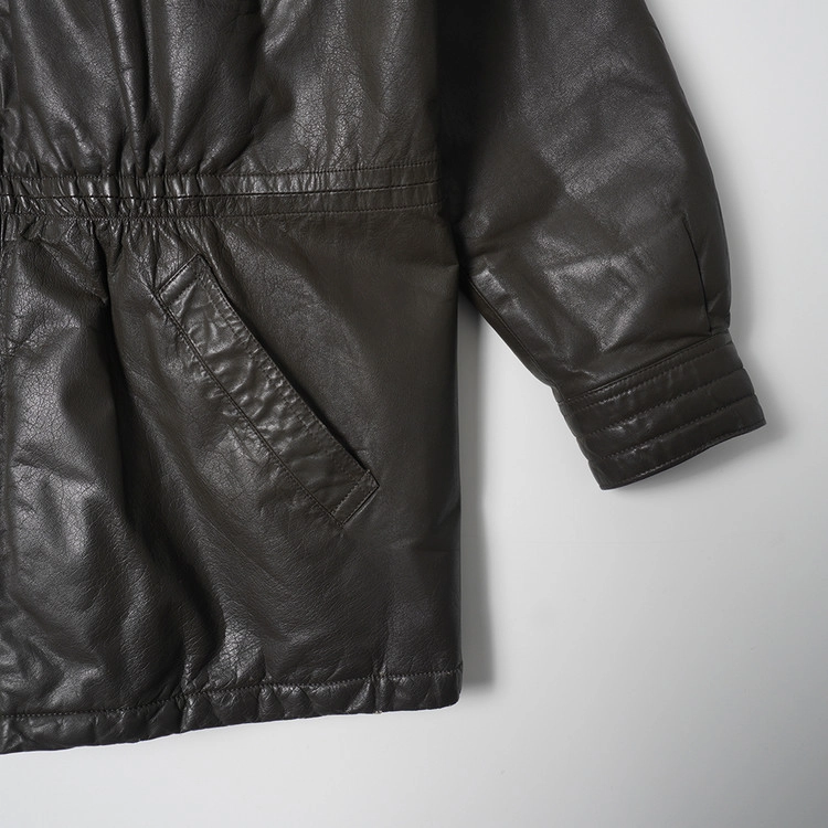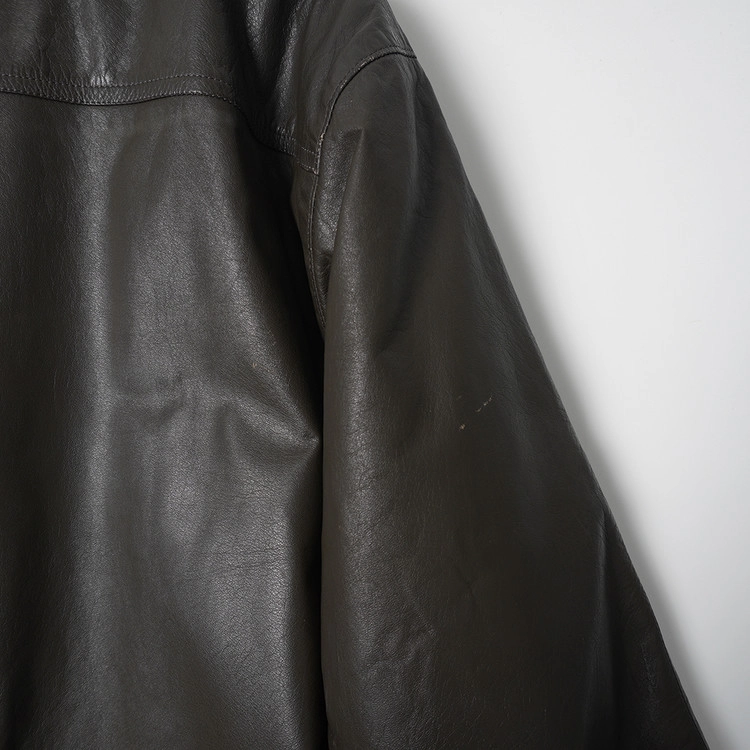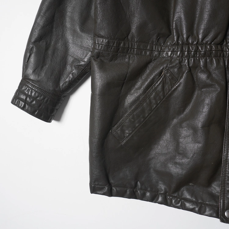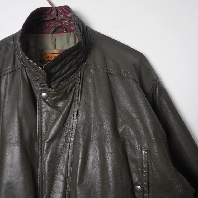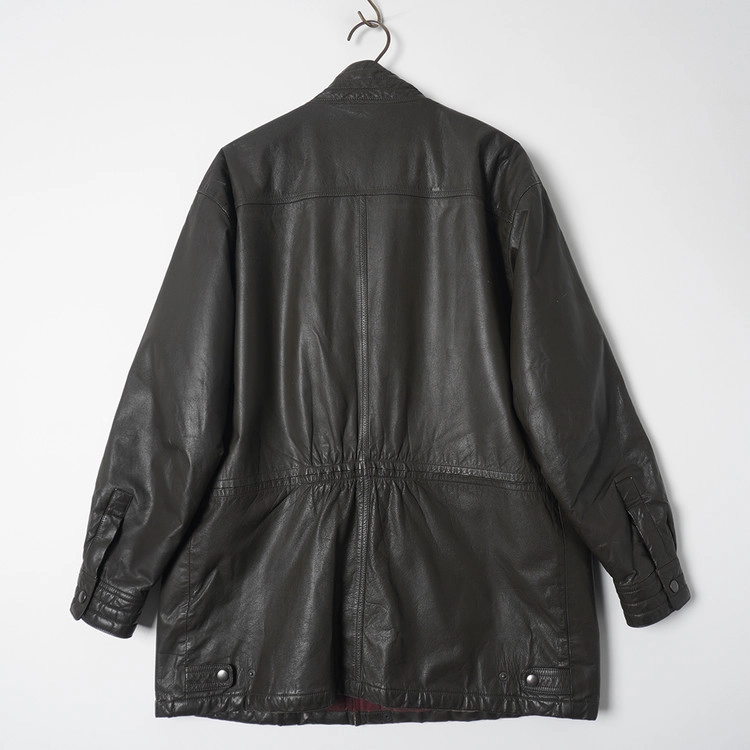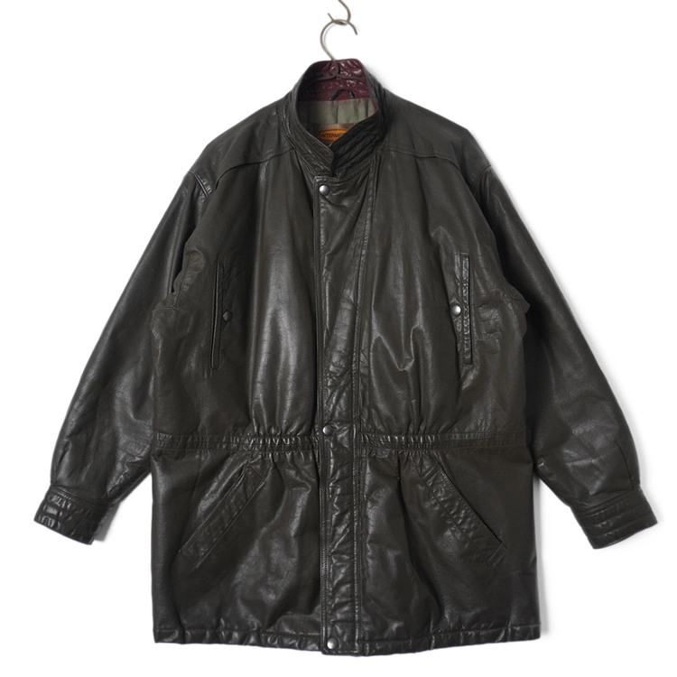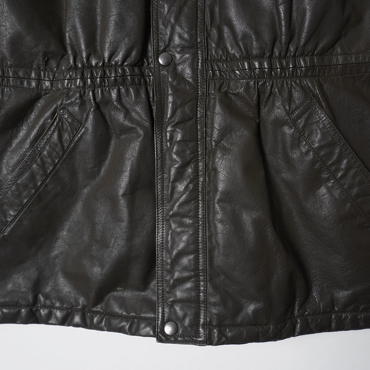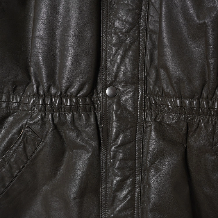 에이징된 올리브그린 컬러의 소가죽 카코트입니다. 약간의 허리밴딩 있는 제품으로 국내 남성 M-L, 여성 free 사이즈 추천드립니다.