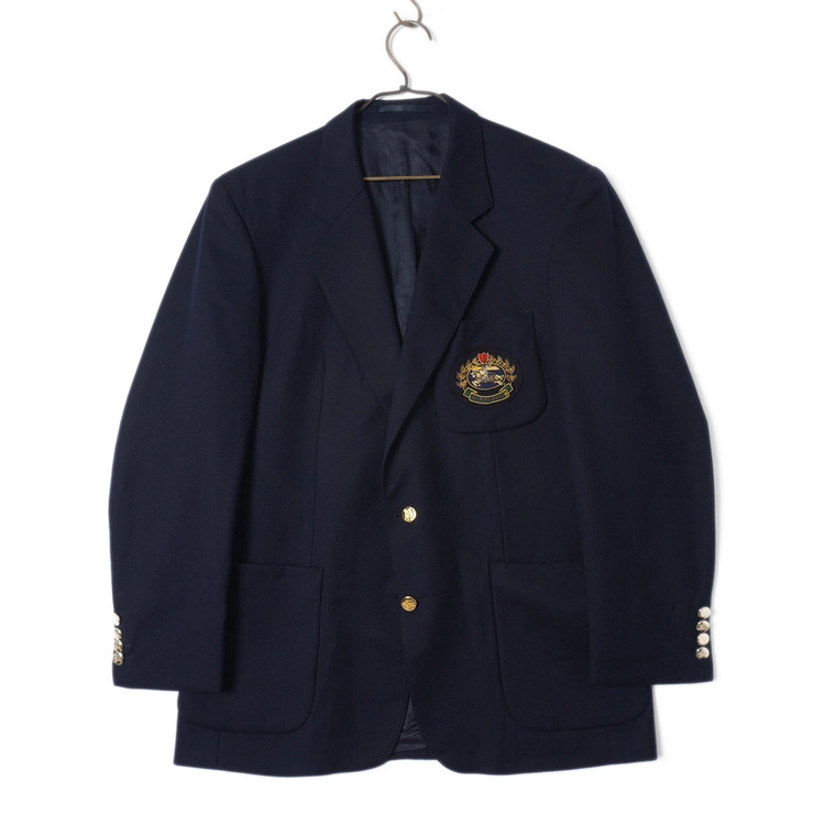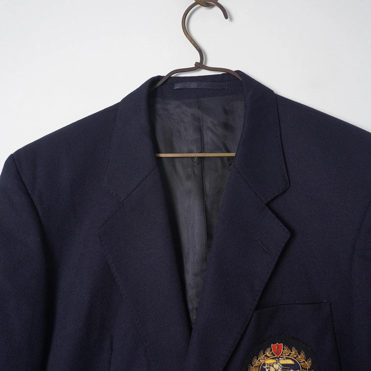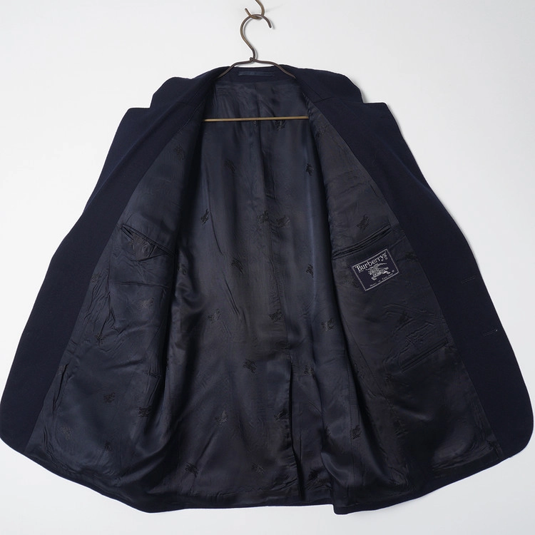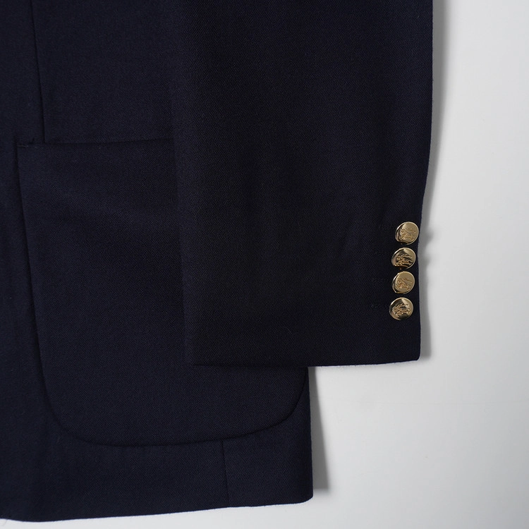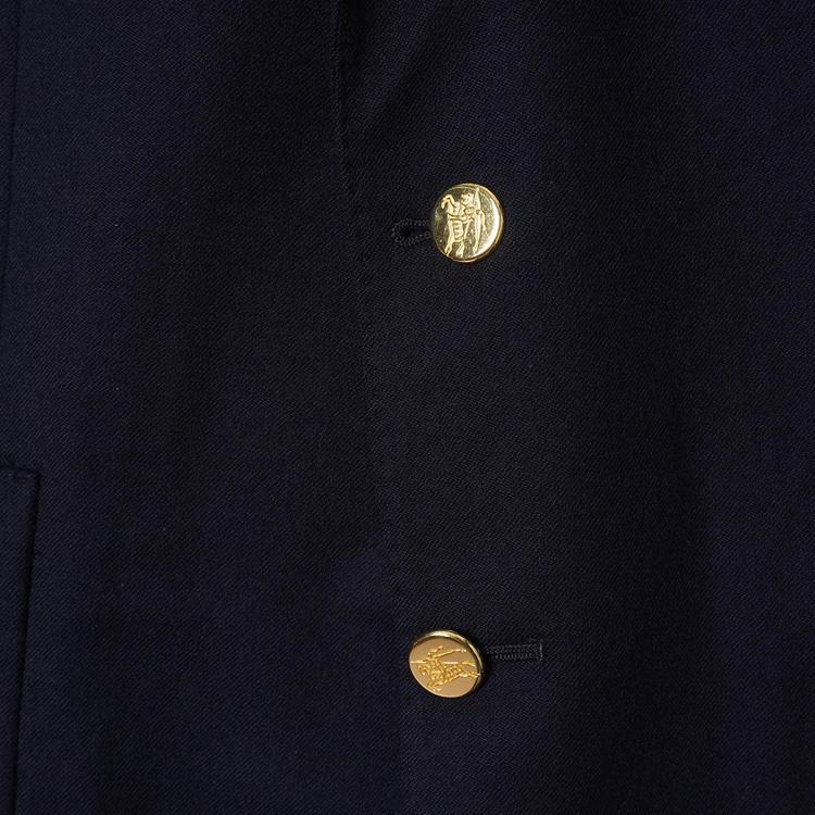 버버리의 잉글랜드 생산 금장 블레이져 입니다. 우수한 울 원단의 다크네이비 컬러, 포켓 와펜, 금장 버튼 사양의 제품으로 매우 우수한 컨디션, 국내 남성 넉넉한 L 사이즈 정도 추천드립니다.