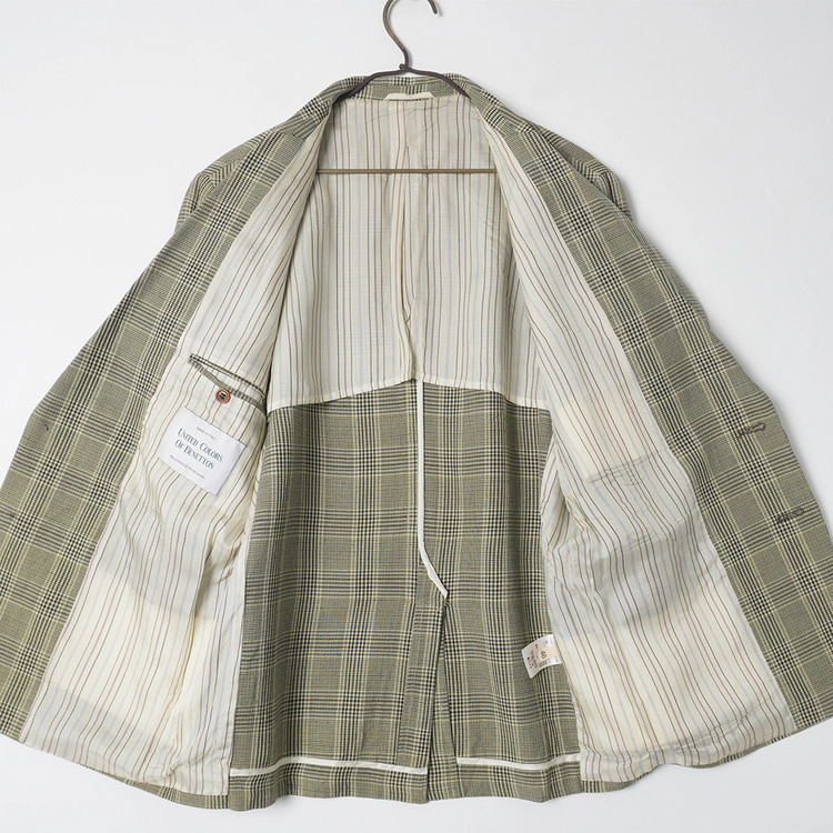 90's 베네통 레이온/린넨 글렌체크 2버튼 블레이져