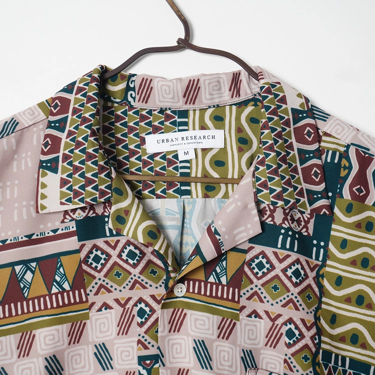 레이온 셔츠 느낌의 찰랑거리는 소재의 그래픽 오픈카라 셔츠입니다.