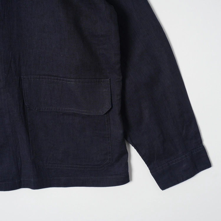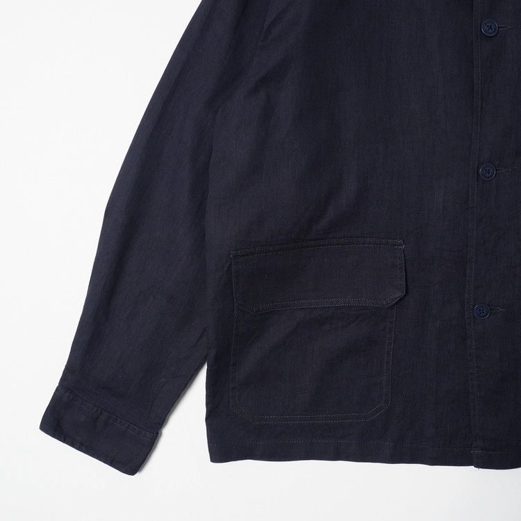 얇은 린넨/코튼 소재의 네이비 컬러 버튼 자켓입니다. 얇고 시원한 원단감으로 봄/가을 착용하기 좋은 제품, 우수한 컨디션 유지중입니다.