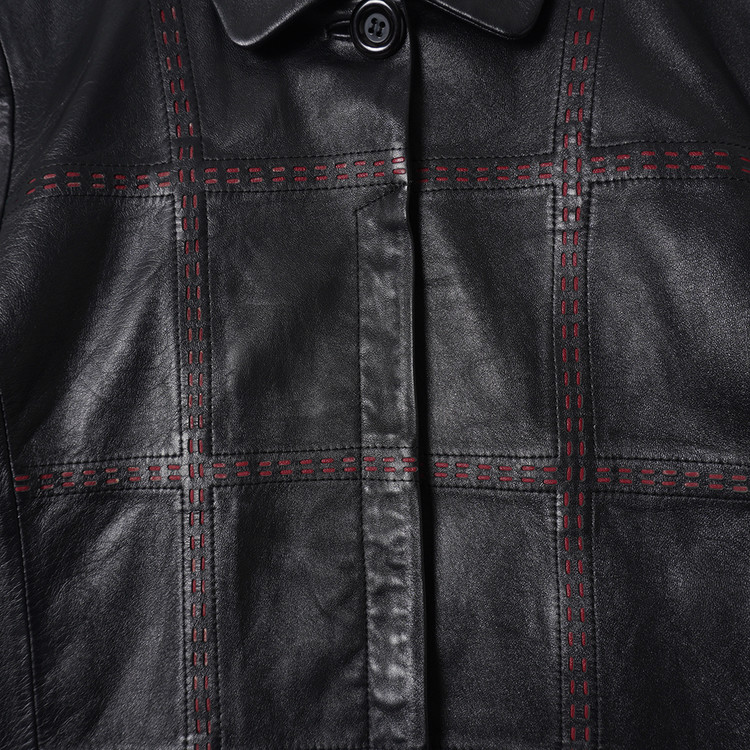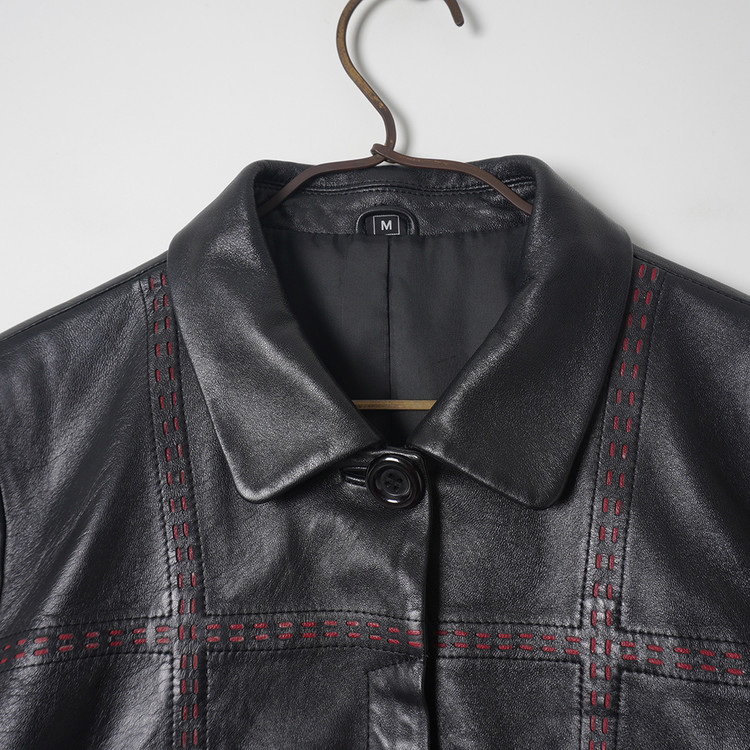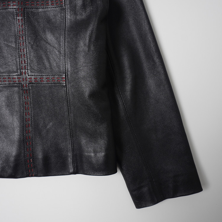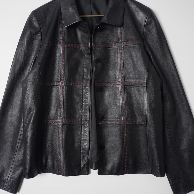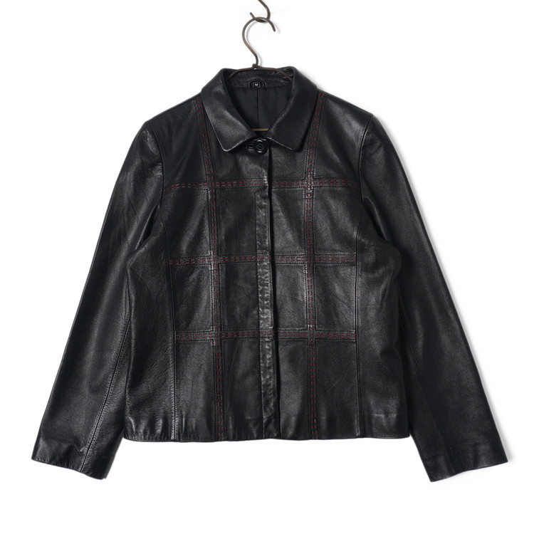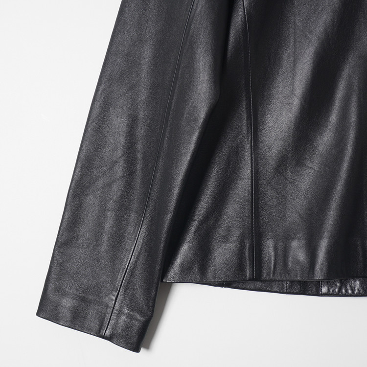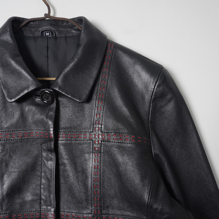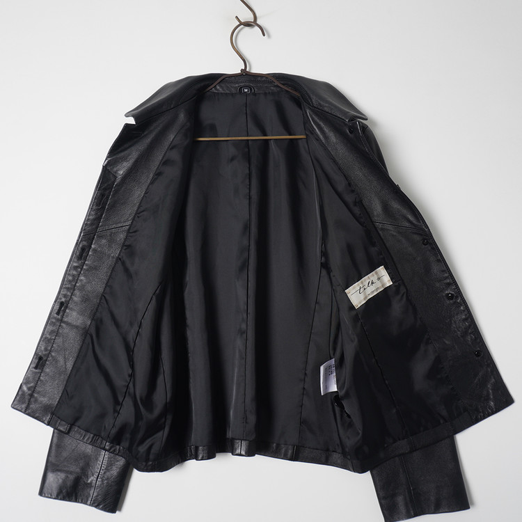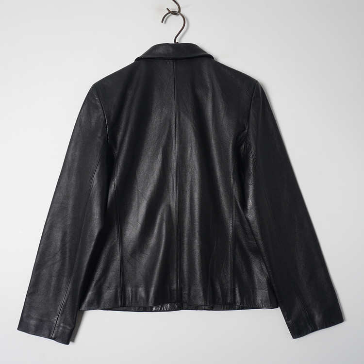 독특한 디테일의 여성용 블랙 양가죽 버튼 자켓입니다. 사용감 적은 우수한 컨디션입니다.