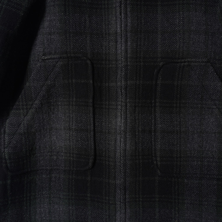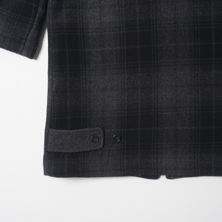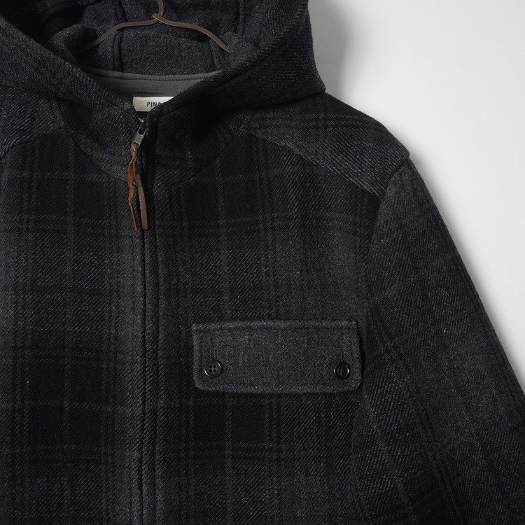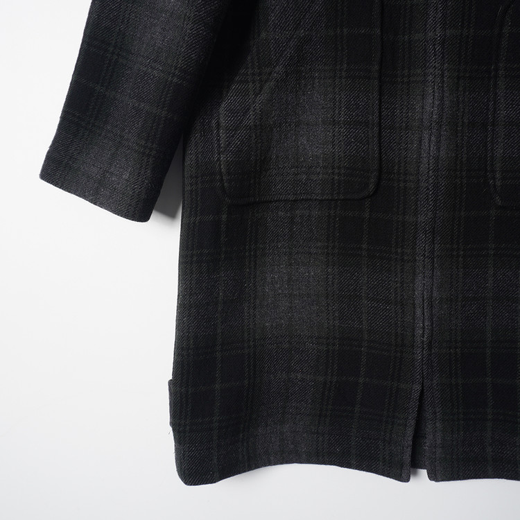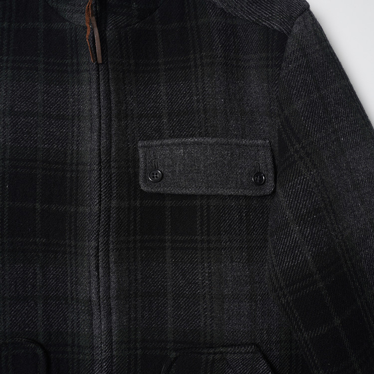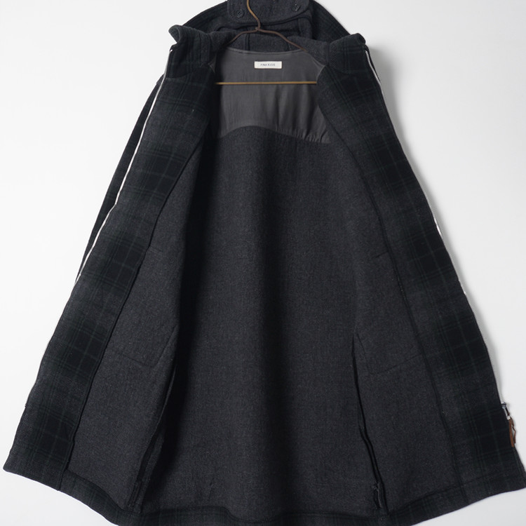 울 모직 체크 집업 후드 코트