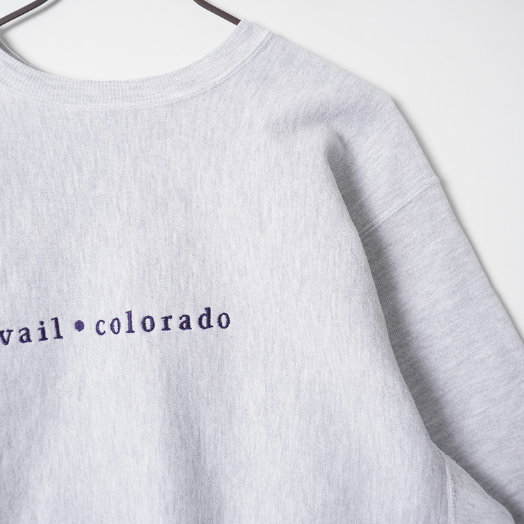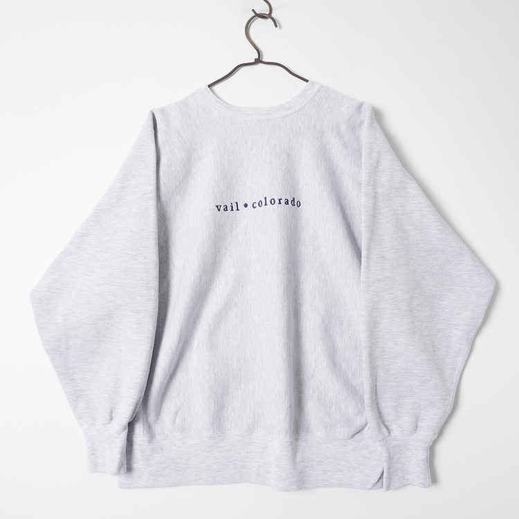 사용감 적은 우수한 컨디션,  자수 스펠아웃의 빈티지 리버스위브 스웻입니다. 강력세탁 완료되었으며 오염없이 깔끔한 상태로 입고되었습니다. L 사이즈로 국내 남성 넉넉한 L 사이즈 추천드립니다.