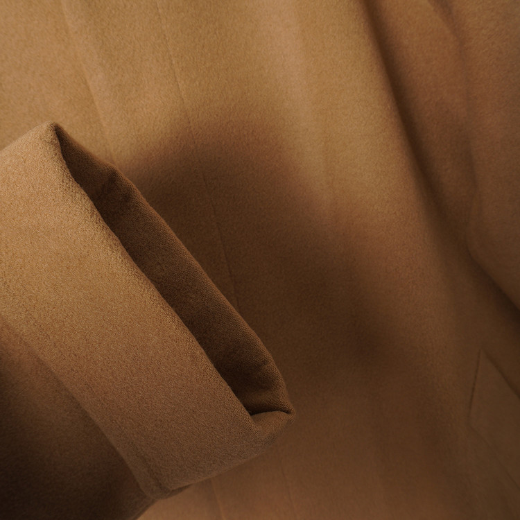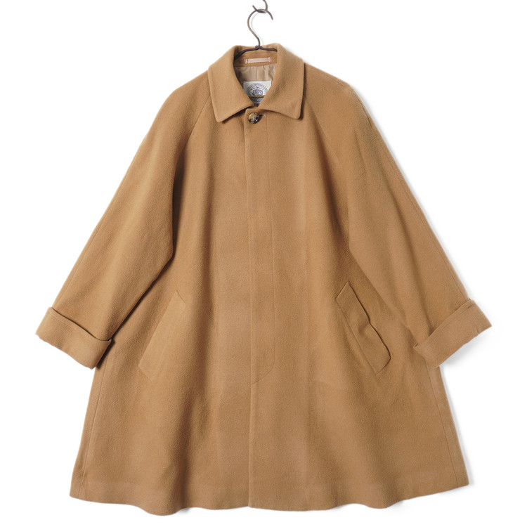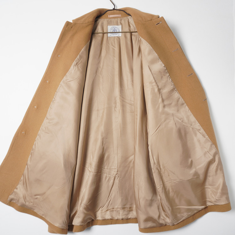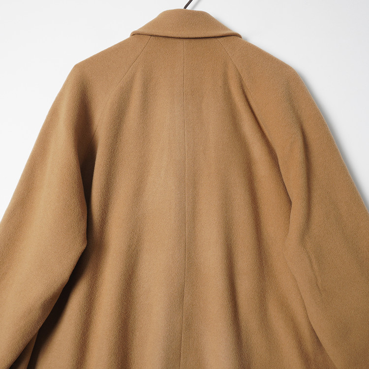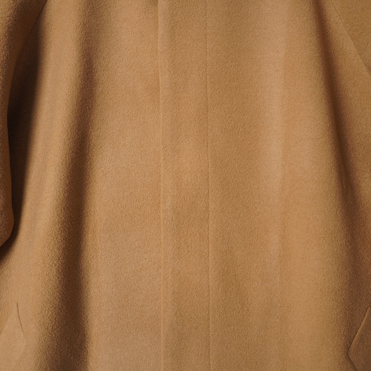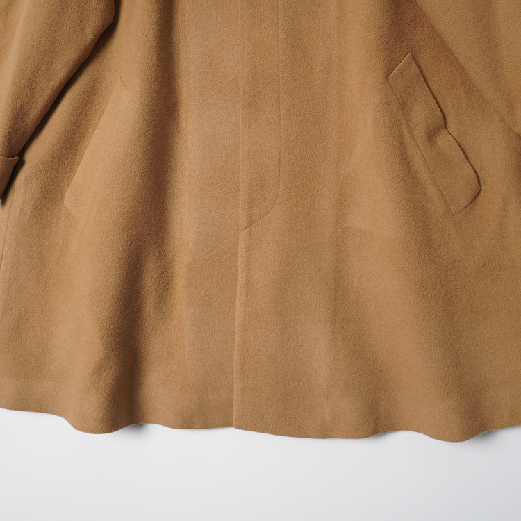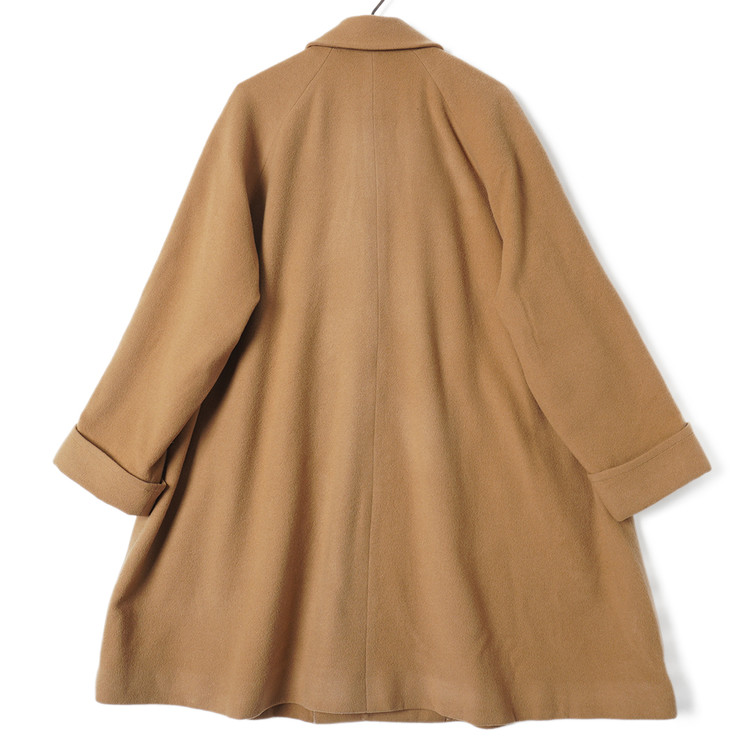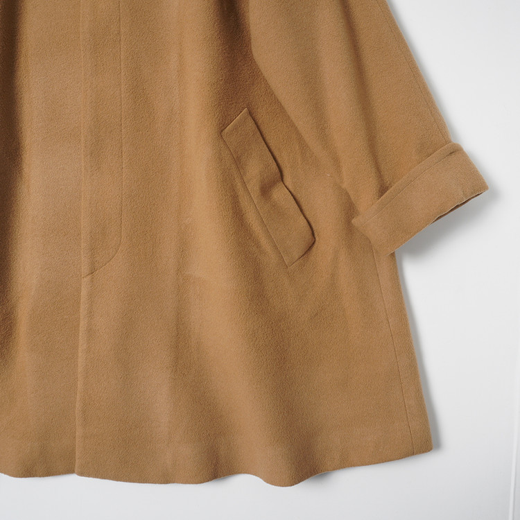 카멜컬러 울 모직원단의 여성용 코트입니다. 래글런 어깨선과 밑으로 갈수록 넓어지는 플레어 스타일, 턴 업된 소매디테일의 착용시 멋진 제품입니다. 11사이즈로 여성 L 또는 오버핏 free사이즈 추천드립니다.