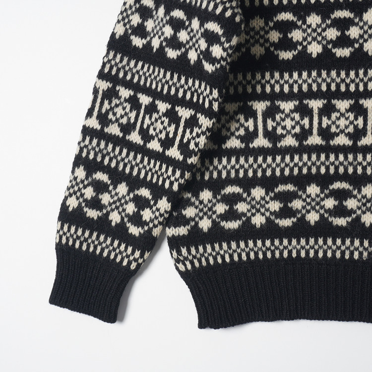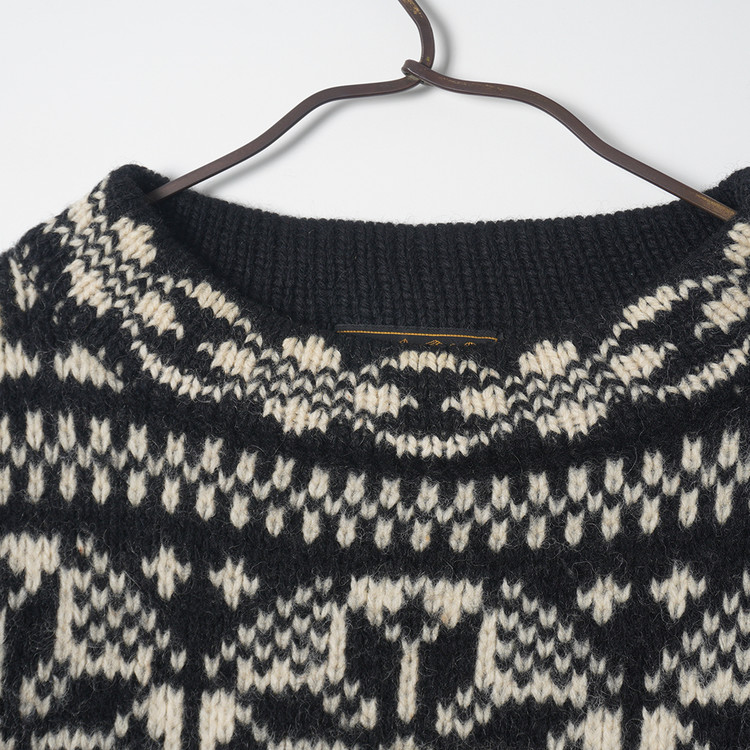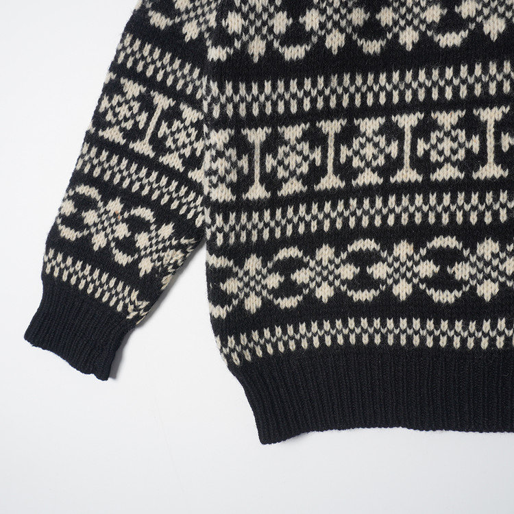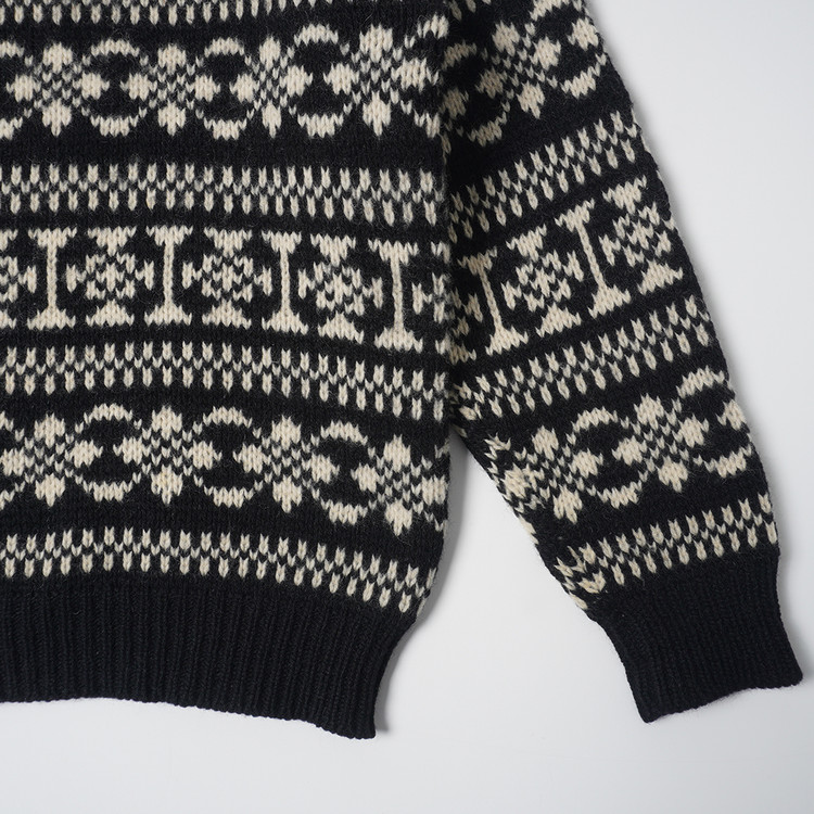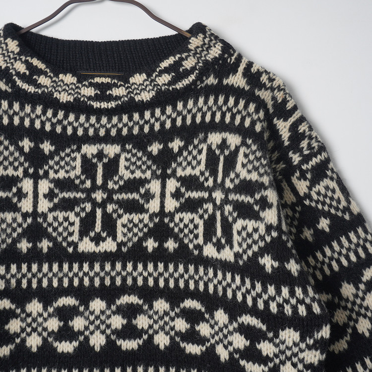 눈꽃 패턴의 두께감있는 섀기독 스타일의 니트 스웨터입니다. 표기 사이즈 M-L, 국내 남성 M, 여성 Free 사이즈 추천드립니다.
