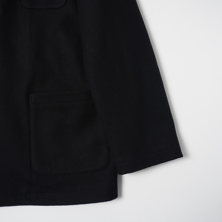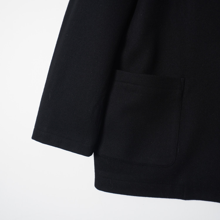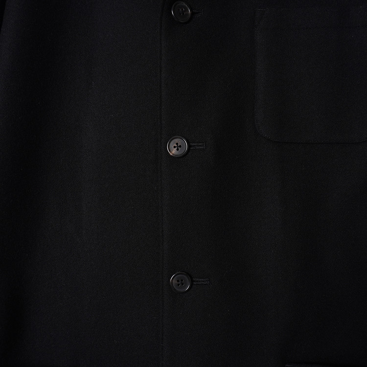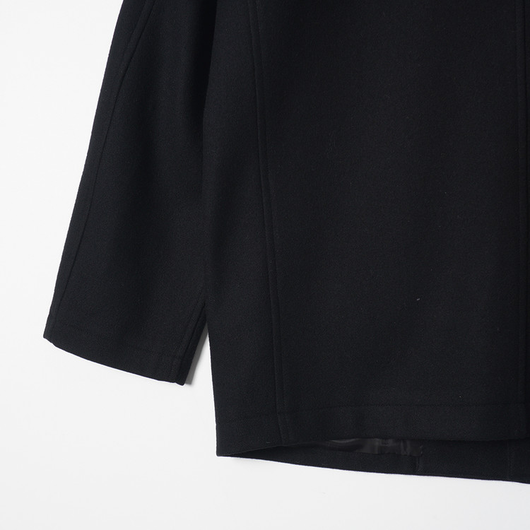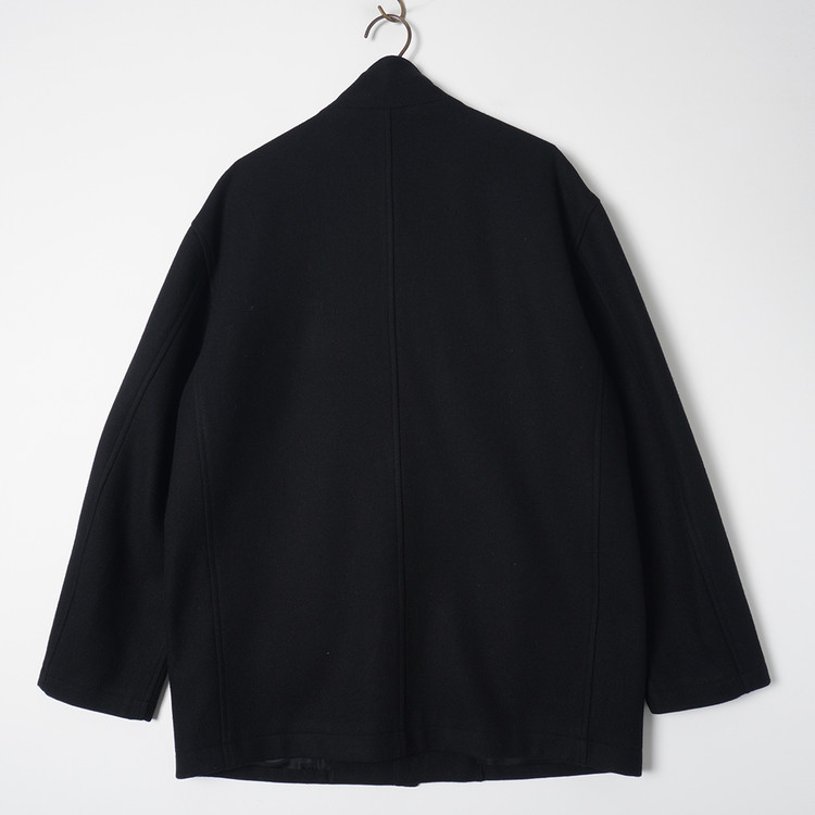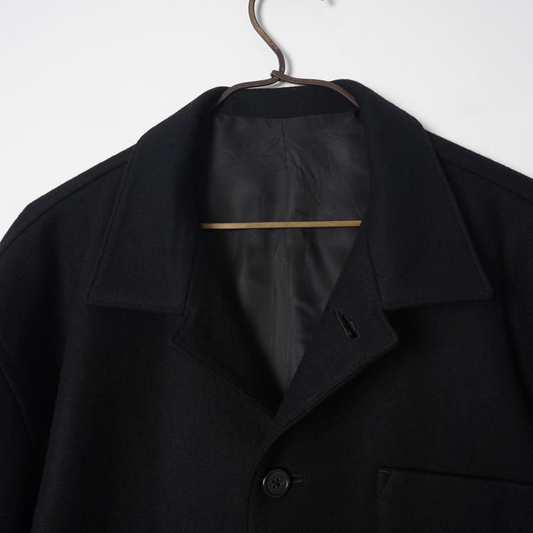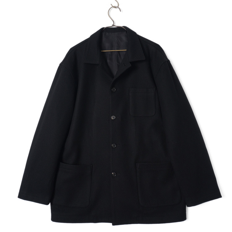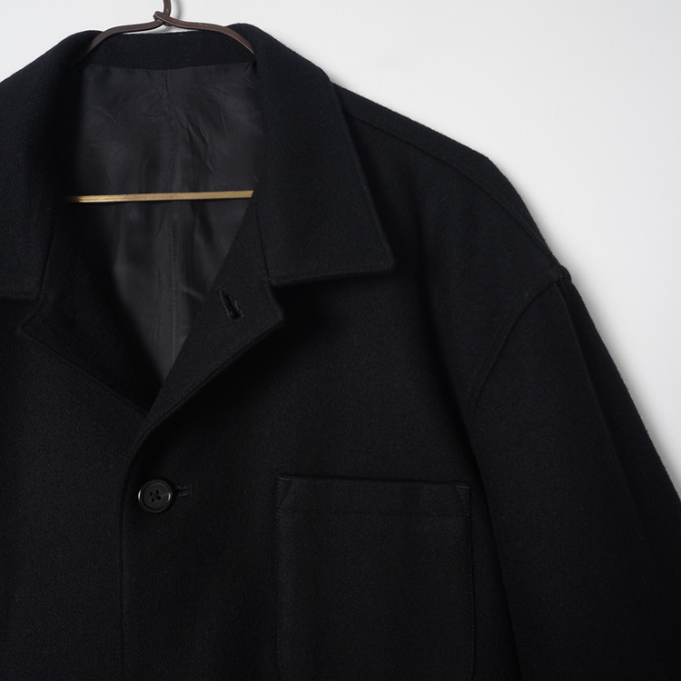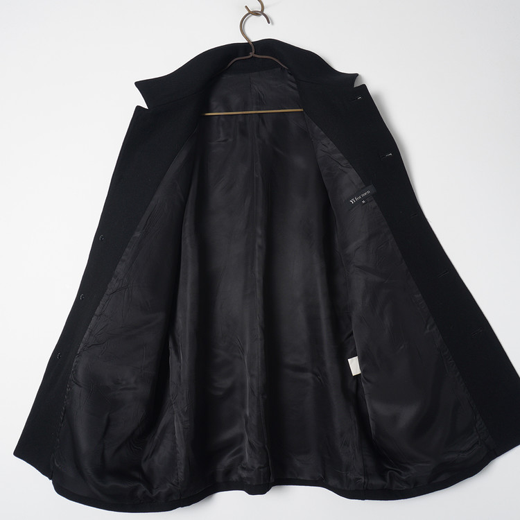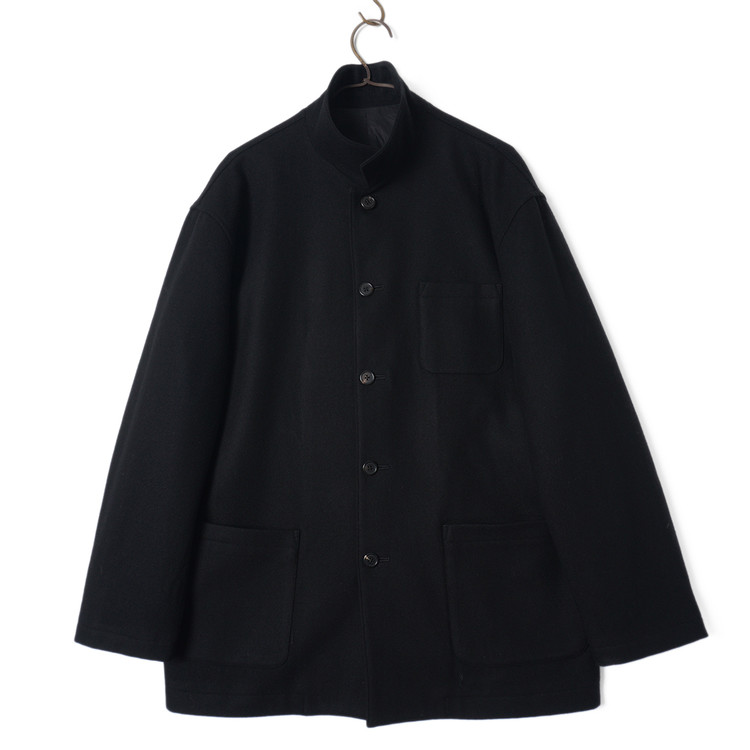 요지 야마모토의 Y's for Men 라인 모직 하프코트입니다. 낮은 카라로 스탠딩 또는 오픈카라 형태로 착용해도 멋지며 부드러운 원단감, 자연스러운 어깨선과 핏감이 멋진제품입니다. 국내 남성 L 사이즈 또는 여성 오버핏 Free 사이즈 추천드립니다.