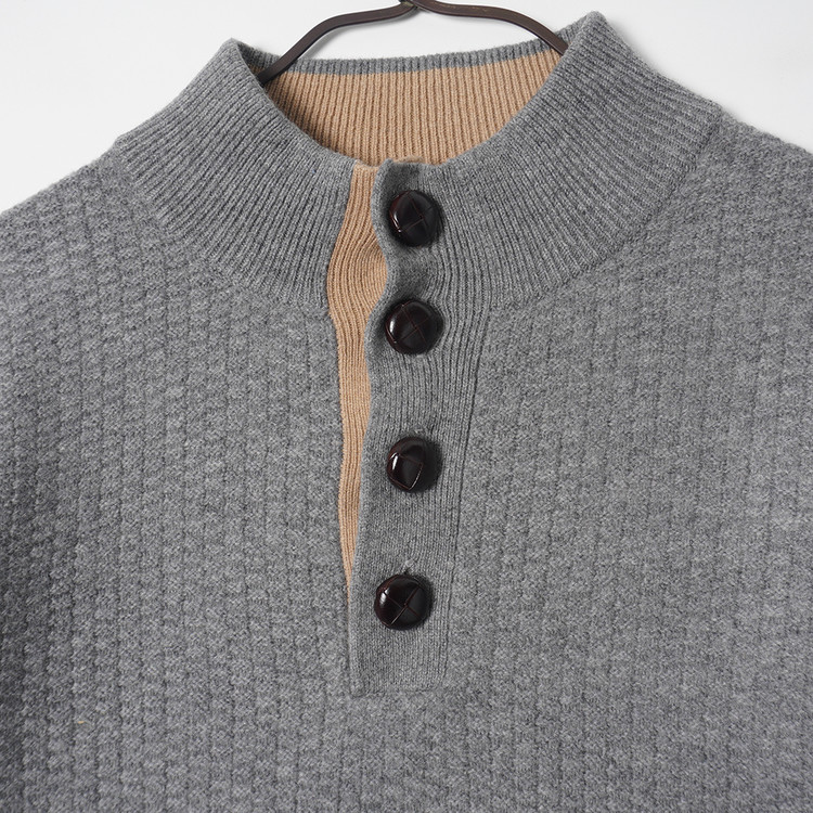 울/나일론 헨리넥 버튼 니트 스웨터