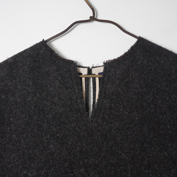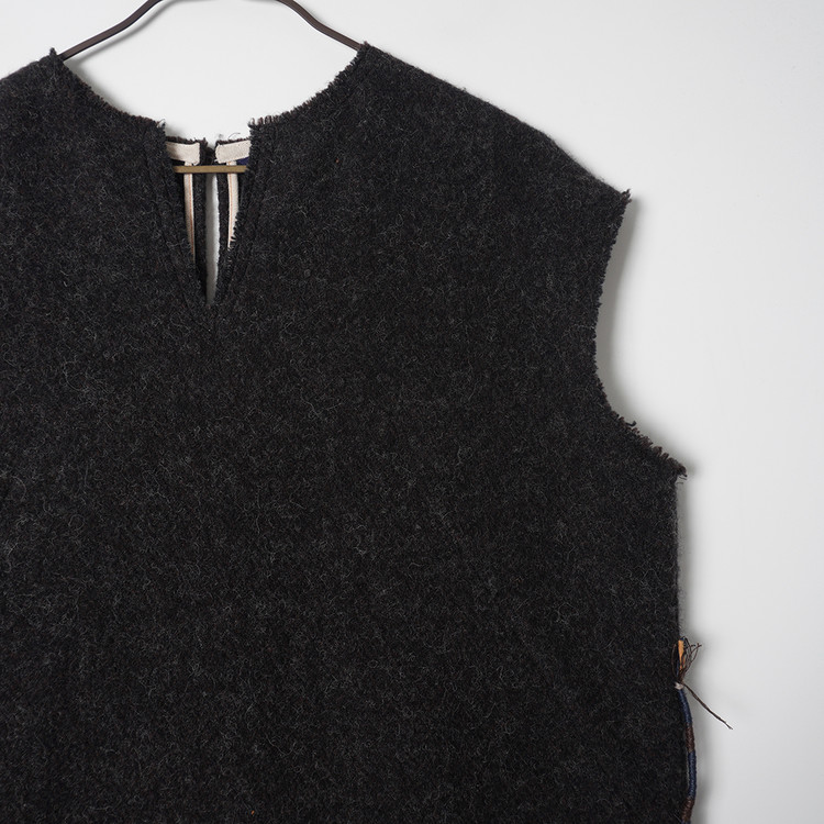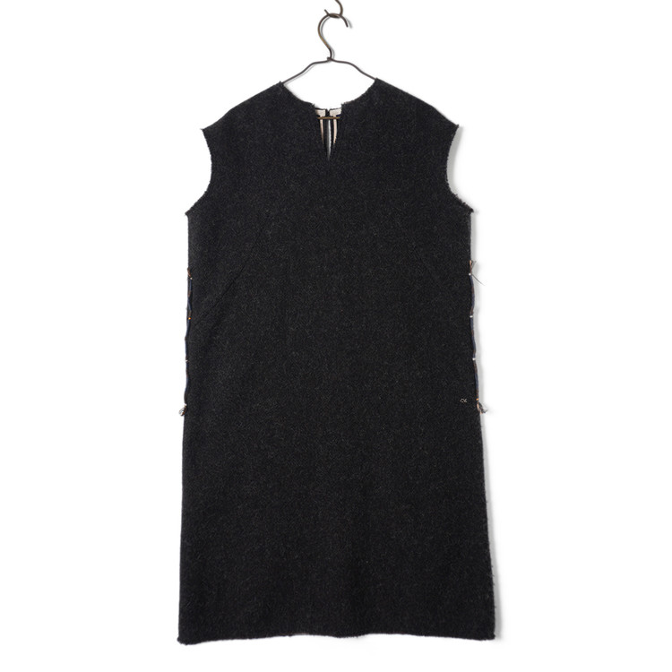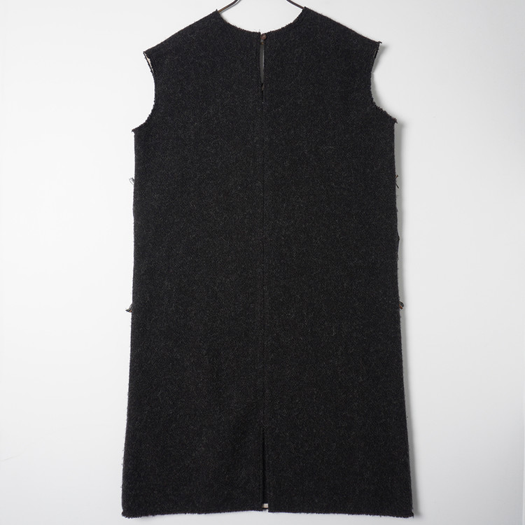 넉넉한 품의 모직 슬리브리스 원피스입니다. 사이드 디테일과 원단감이 멋진 제품으로 핏한 니트 소재 이너등과 함께 매치하시면 좋을듯 합니다. 사용감 적은 매우 우수한 컨디션
