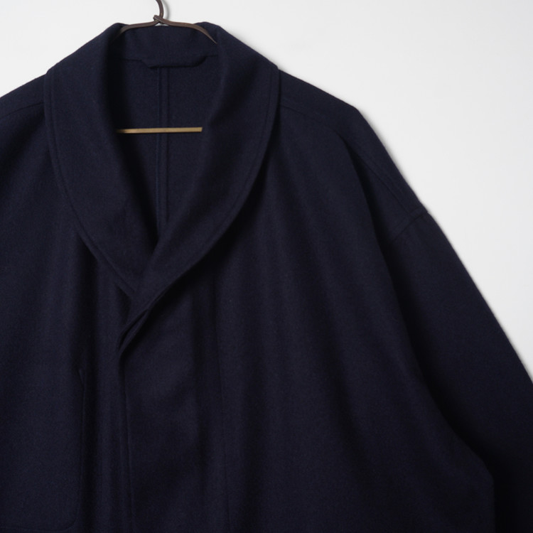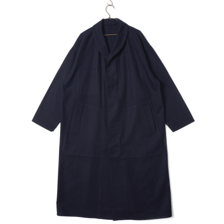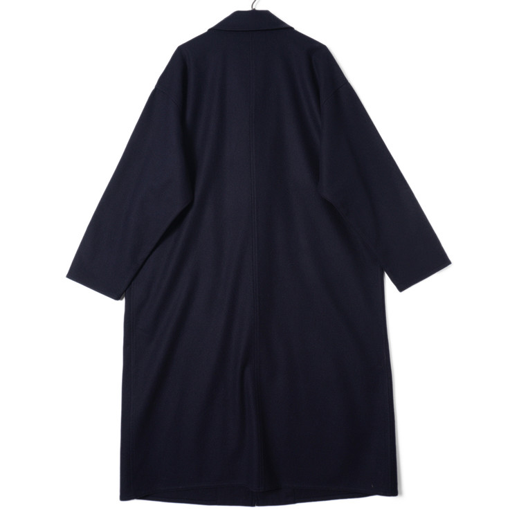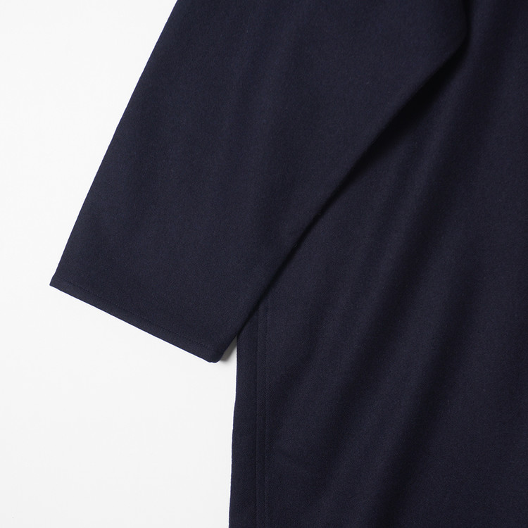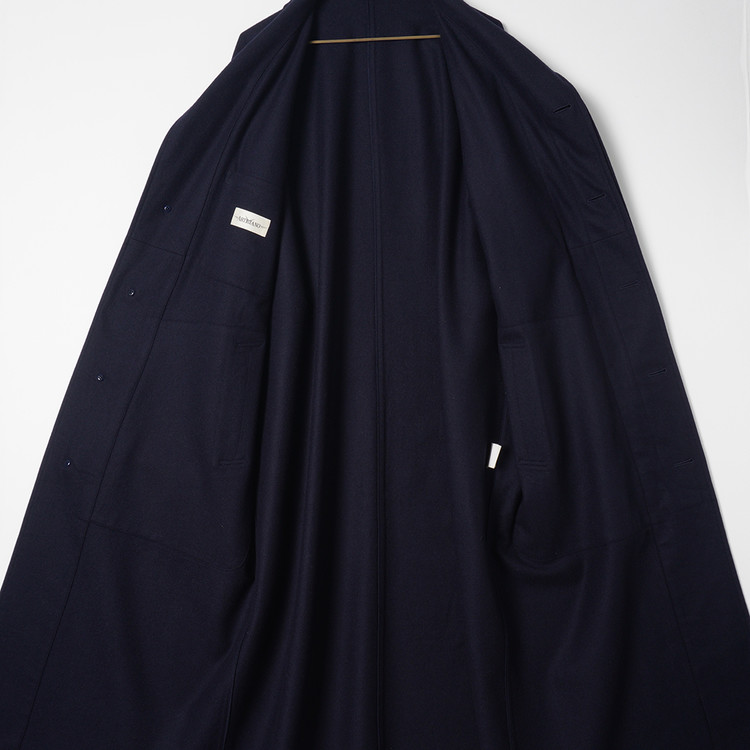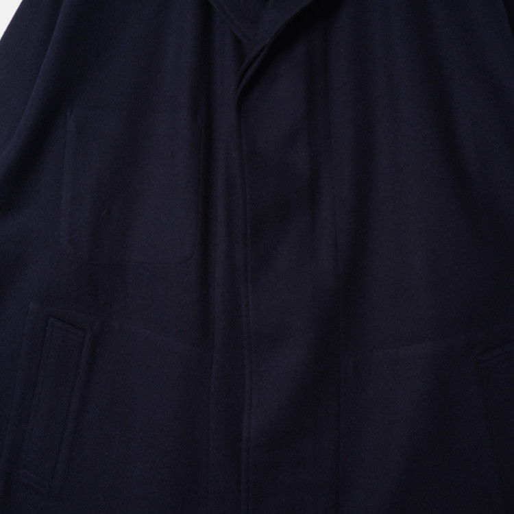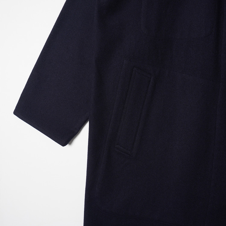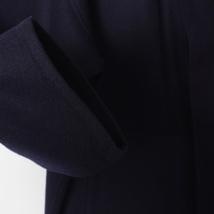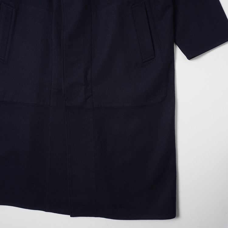 다크 네이비 울 모직 로브 롱코트