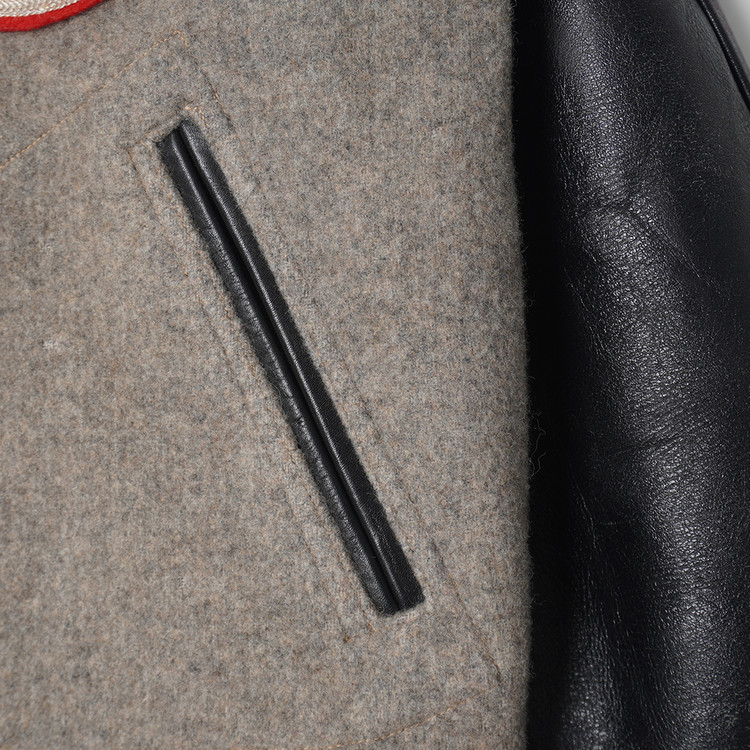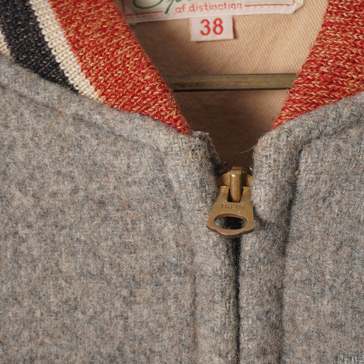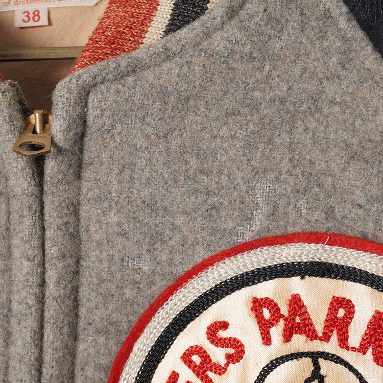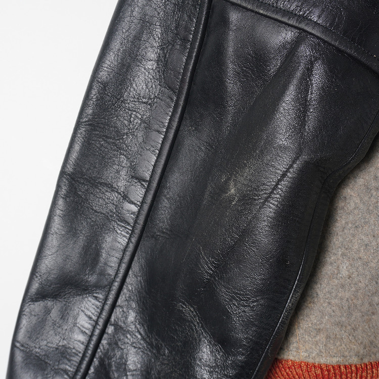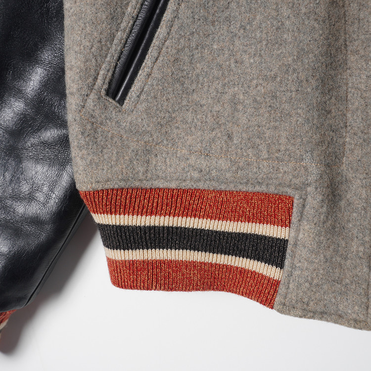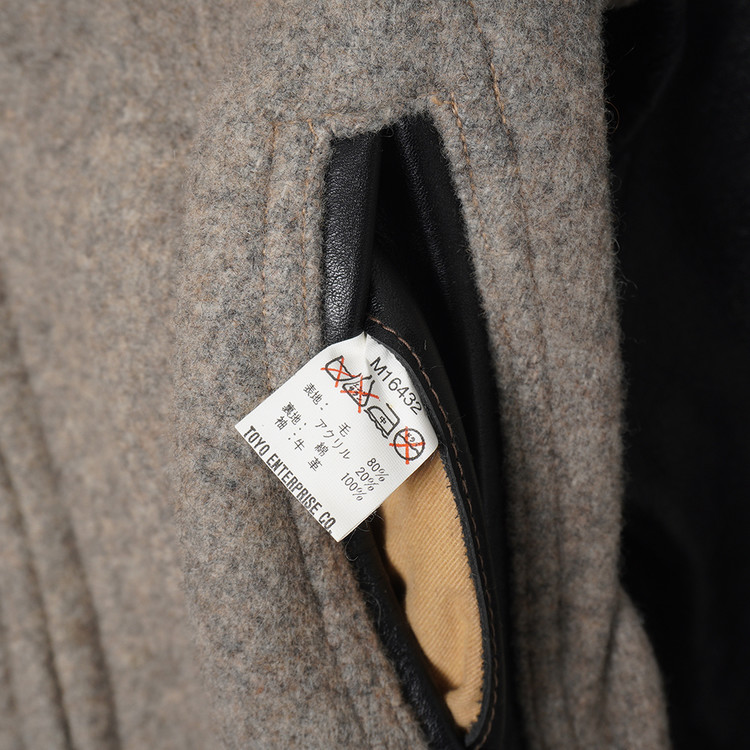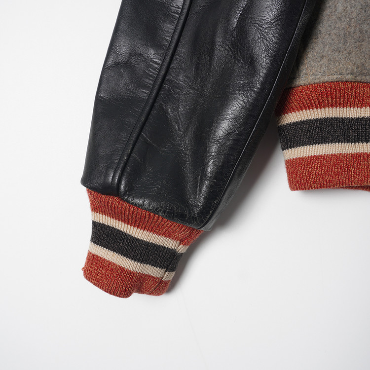 버즈릭슨, 슈가케인, 선 서프 등으로 유명한 아메리칸 캐쥬얼 복각 컴퍼니 토요엔터프라이즈의 스타일아이즈 바시티 자켓입니다. 두께감있는 울블렌드 바디와 래글런 어깨선, 묵직한 소가죽 슬리브가 사용된 제품으로 슬림하고 짧은 기장의 핏입니다. 전체적으로 에이징 있는 컨디션으로 표기사이즈 38, 국내 남성 S-M (93)정도, 여성 free 사이즈 추천드립니다.