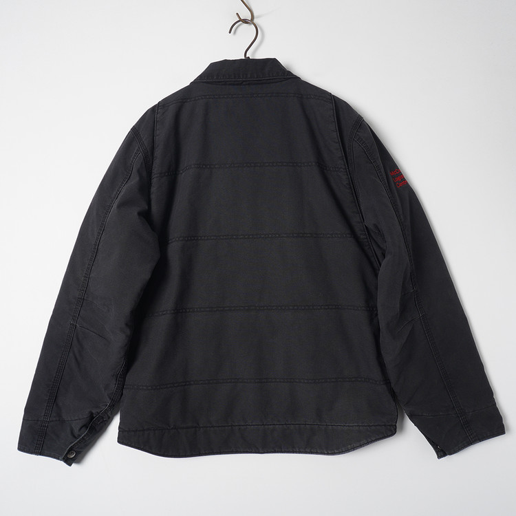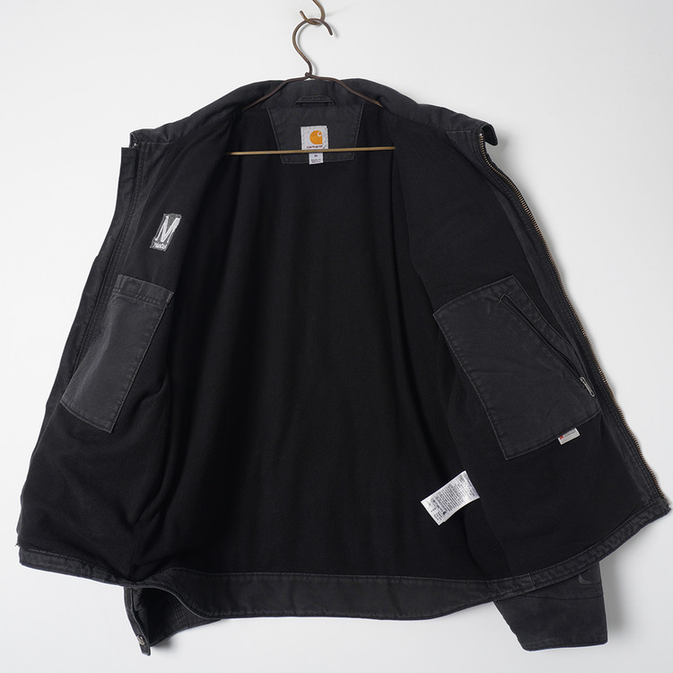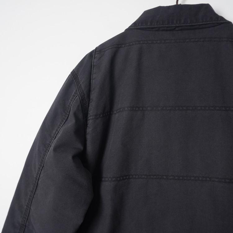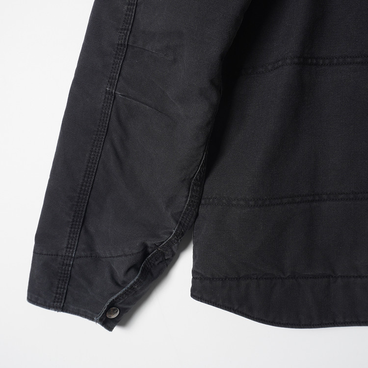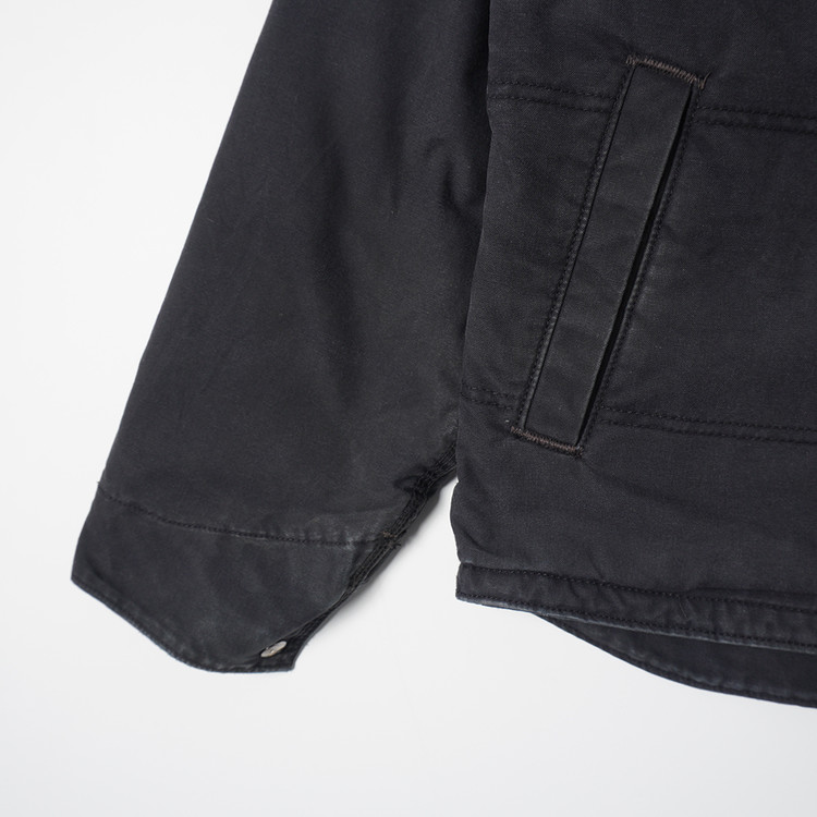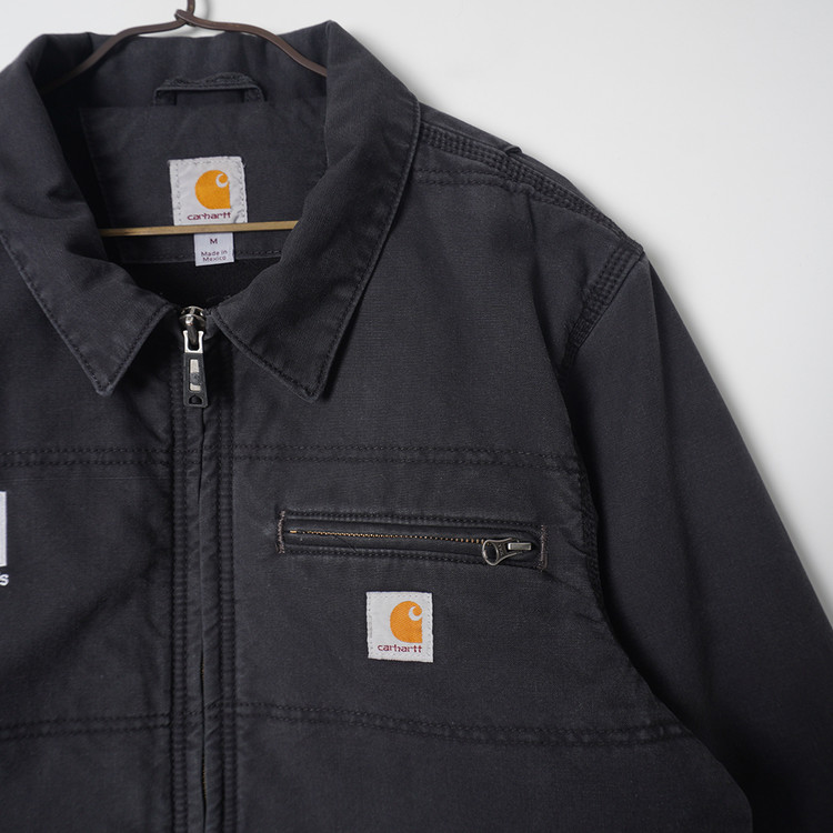 팔부분 누빔 안감, 바디부분 신슐레이트 플리스안감의  도톰한 두께감의 워크자켓입니다. 디트로이트 자켓의  집업 스타일로 일반 칼하트 덕코튼 보다 좀 더 가벼운 소재인 퀵덕 코튼이 사용되었습니다. 우수한 컨디션으로 국내 남성 L 추천드립니다.