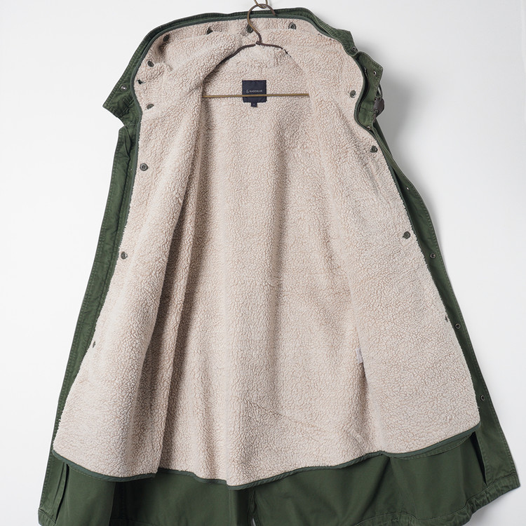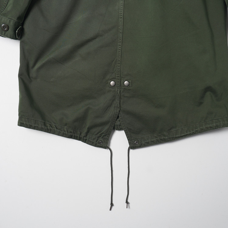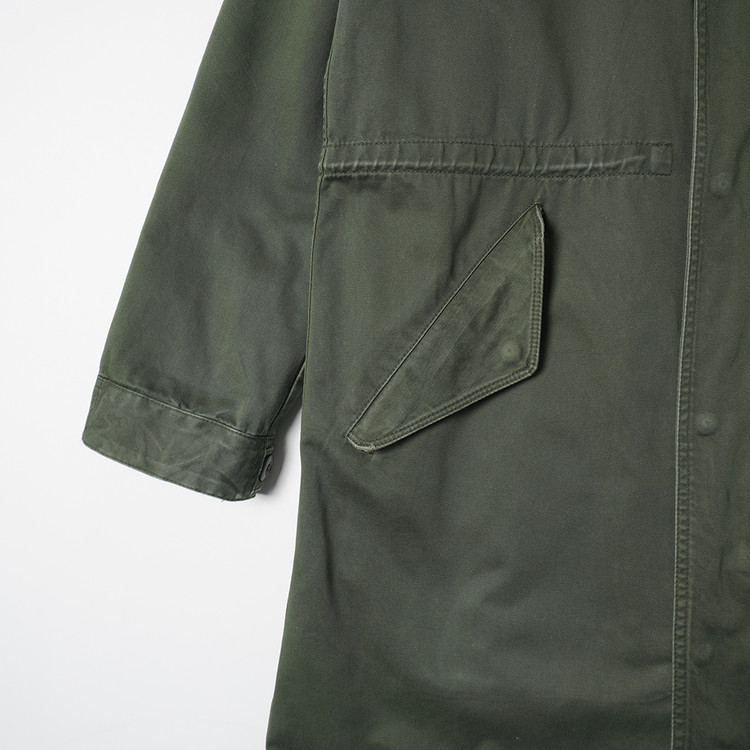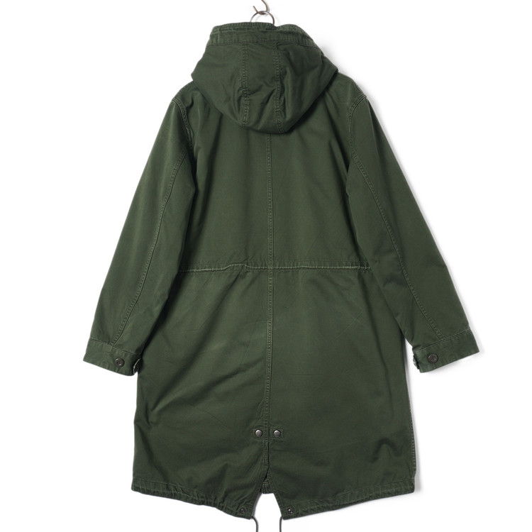 M-51 모티브의 피시테일 파카입니다. 플리스 안감 라이닝으로 날씨에 따라 탈부착하여 착용가능한 제품입니다. 표기 사이즈 L, 슬림한 핏으로 남성보다는 국내 여성 Free 사이즈 추천드립니다.