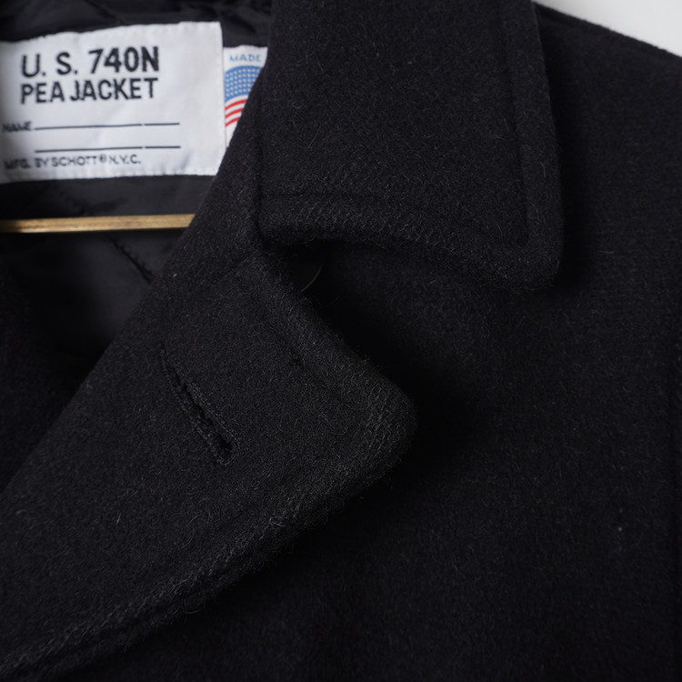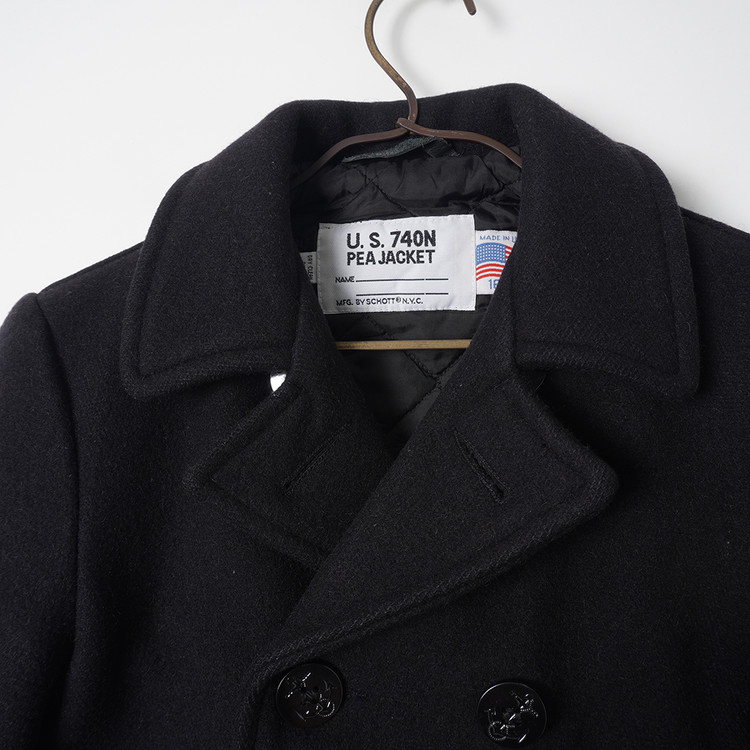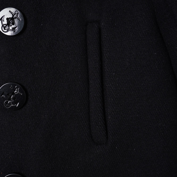 피코트의 클래식인 쇼트의 시그니쳐 피코트 740N 입니다. 블랙컬러의 두툼한 두께의 멜튼울이 사용되었으며 주니어 16사이즈 입니다. 사용감에 의한 전체적인 모직 원단 사용감 존재하는 두꺼운 두께감의 빈티지 피스입니다. 국내 여성 M 사이즈 추천드립니다.