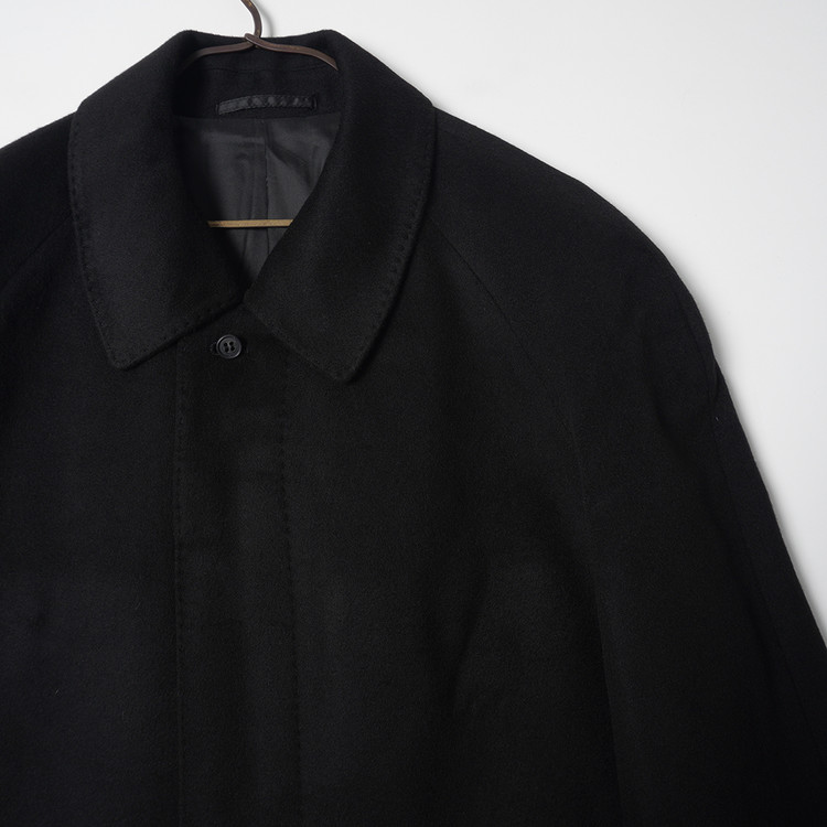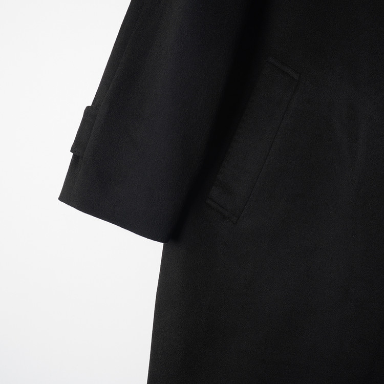 울/캐시미어 블랙 모직 발마칸 코트
