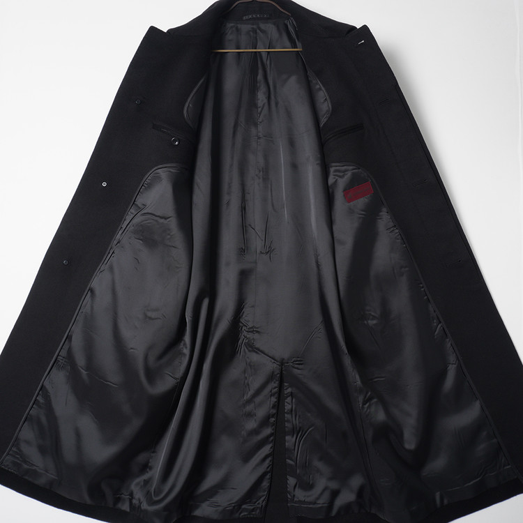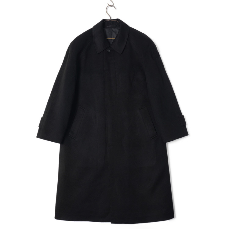 스탠다드한 디자인의 울/캐시미어 발마칸 코트입니다. 국내 남성 M-L 사이즈 정도 추천드립니다.