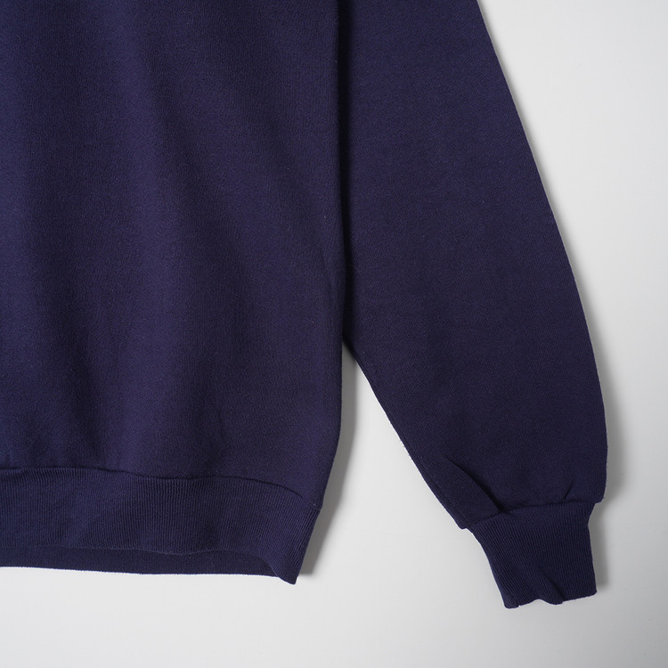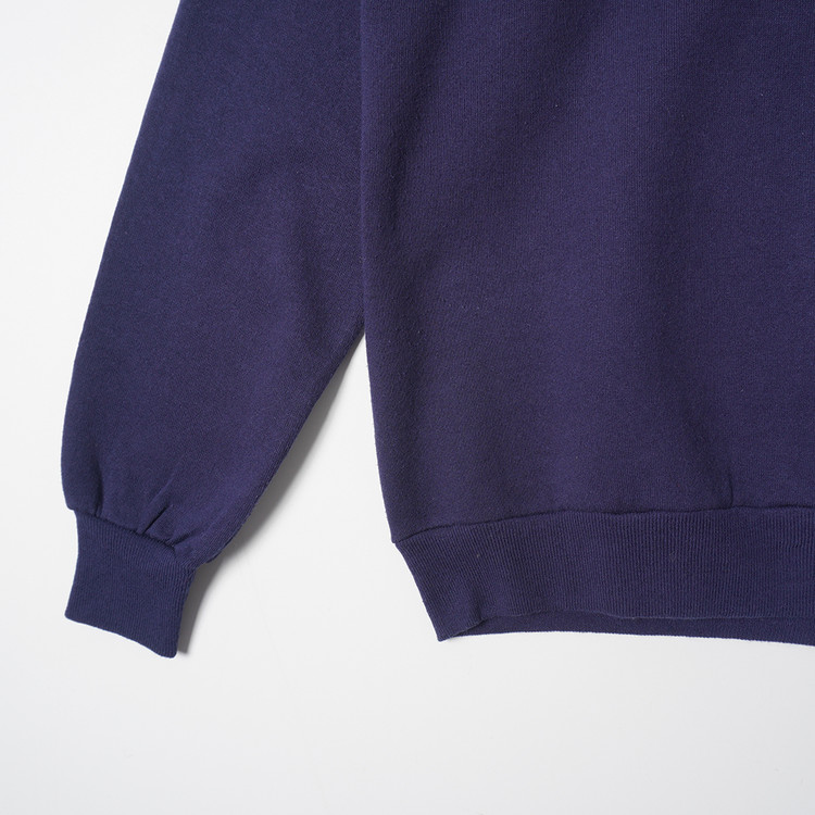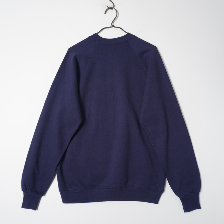 80년대 스웻특유의 슬림한 핏과 래글런 어깨, 얇은 두께감, 50/50 원단 사용